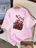 Женская футболка с принтом «Корзина вишен», дышащая, повседневная, летняя, с коротким рукавом, мягкая, свободная, уличная одежда