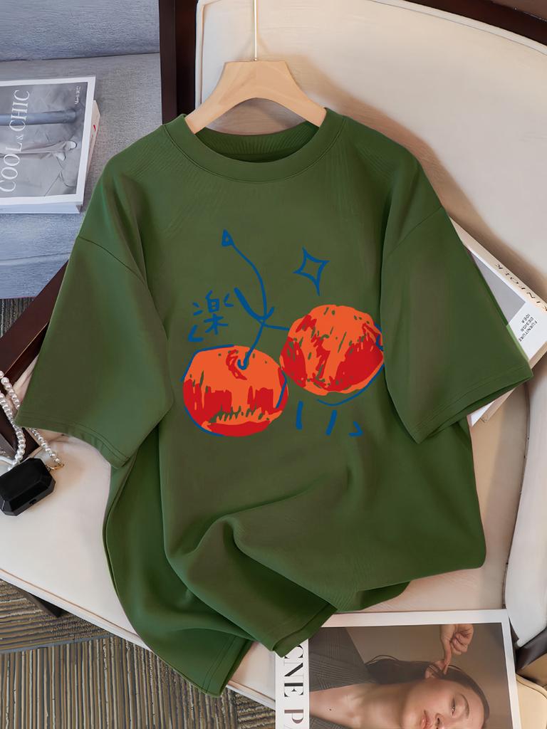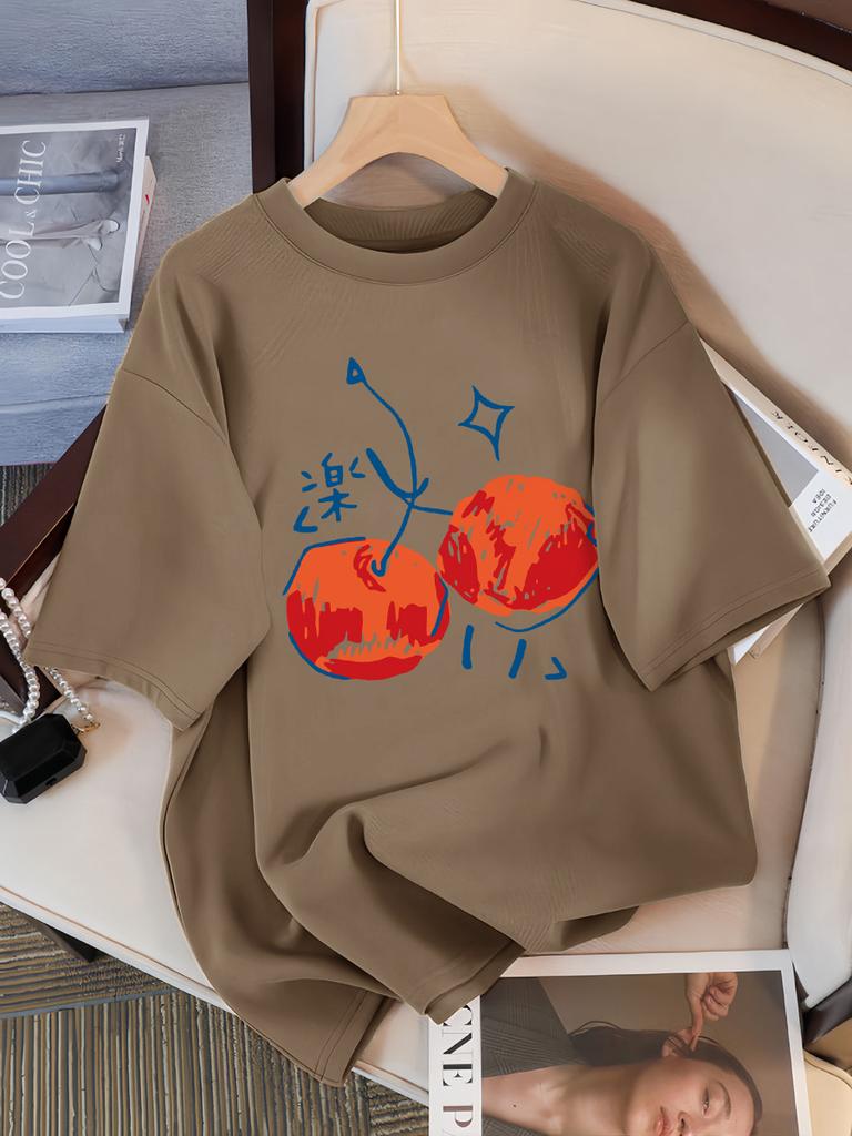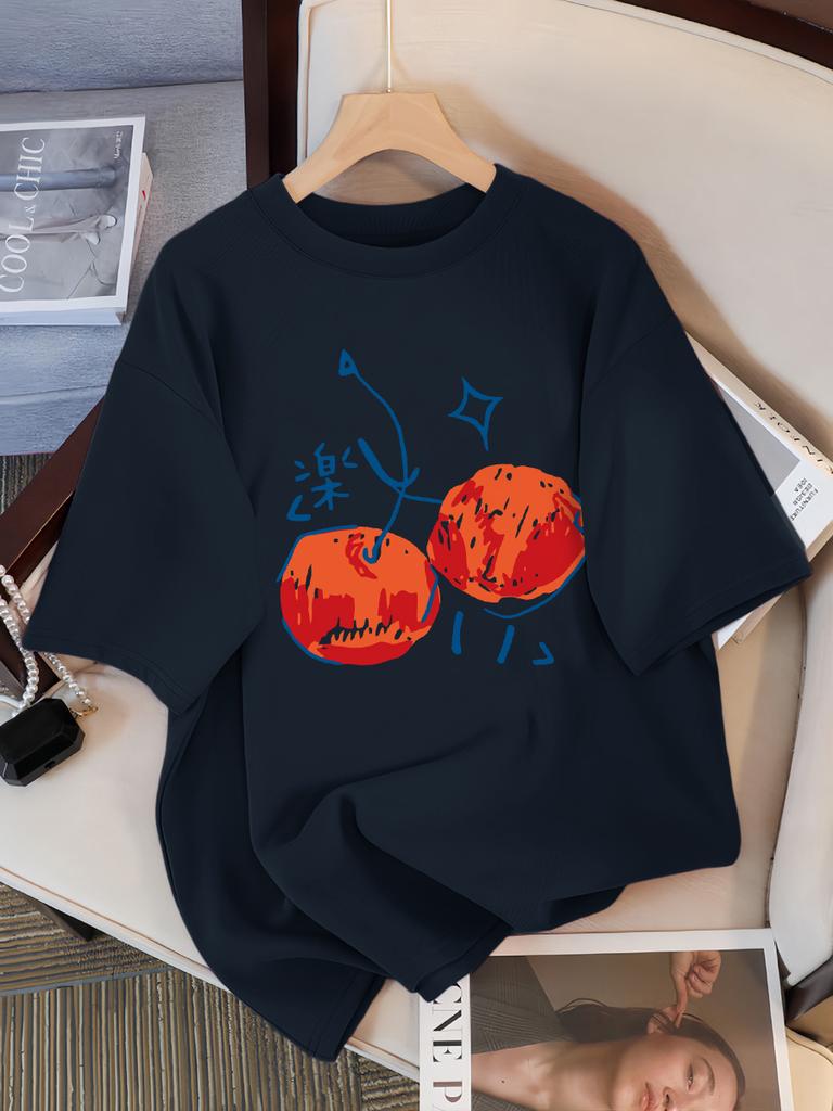 Принты с иллюстрацией вишни Женская футболка Повседневная Спортивная С коротким рукавом Дышащая Летняя футболка Хлопок Уличная Новая одежда