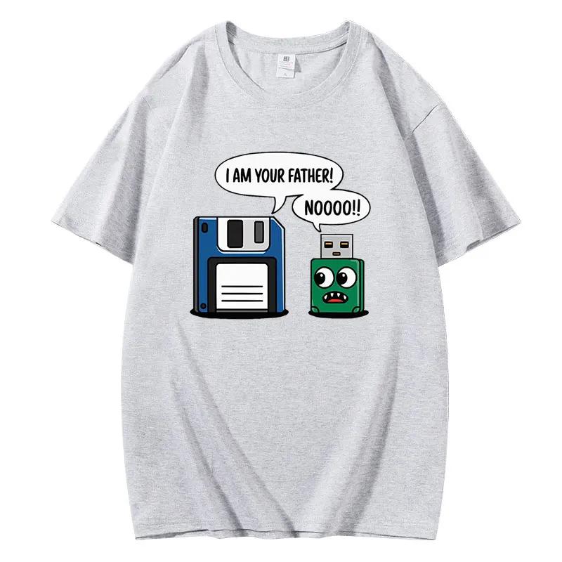 2025 Летняя мужская футболка с забавным рисунком, с коротким рукавом и круглым вырезом, с рисунком отца и сына, с рисунком дискеты, для мужчин