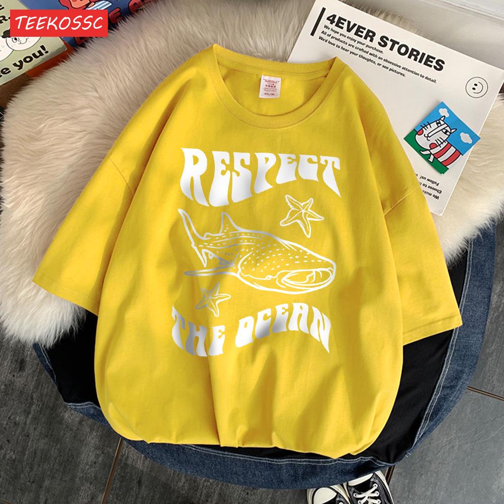 Уважайте Океан Защищая Китов Принт Мужские Футболки Посадка Оверсайз Футболка Досуг Мягкая Футболка Удовольствие Дышащие Топы