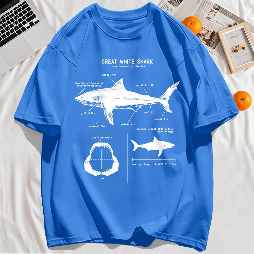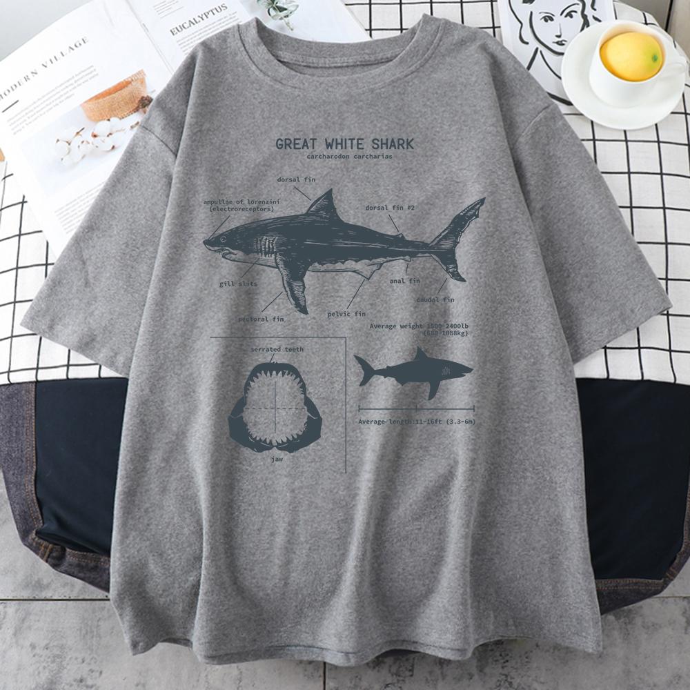 Футболка Анатомия большой белой акулы Новая летняя мужская уличная с коротким рукавом в стиле хип-хоп панк Повседневные топы оверсайз Белые футболки