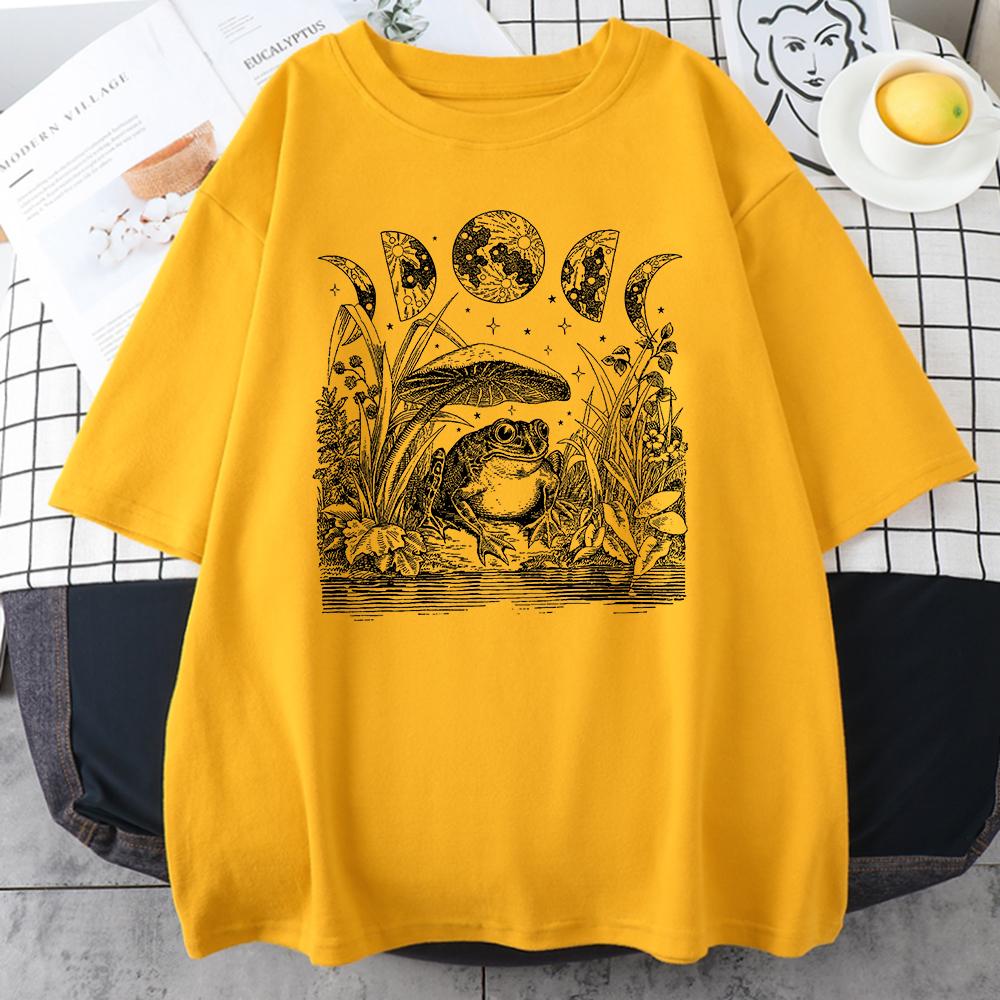 Милая Коттеджкор Эстетика Лягушка Гриб Луна Ведьминский Мужская Футболка Одежда Винтажная Повседневная Оверсайз Хлопковые Футболки Креативные Мужские Топы