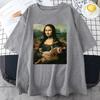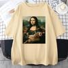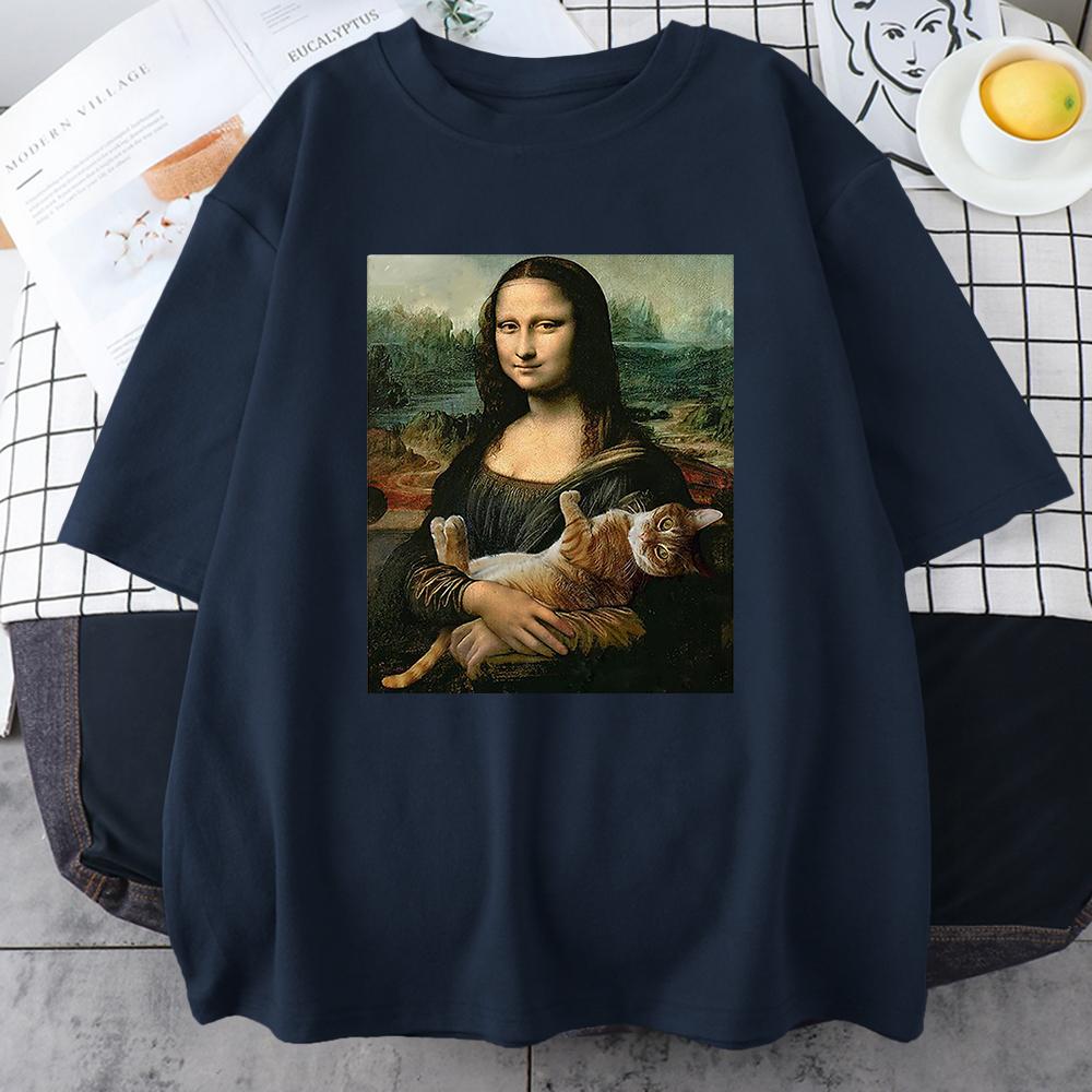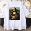 Забавная футболка с принтом «Мона Лиза и кот» для мужчин, летняя хлопковая футболка, свободная дышащая одежда, уличная мода, повседневные футболки с коротким рукавом