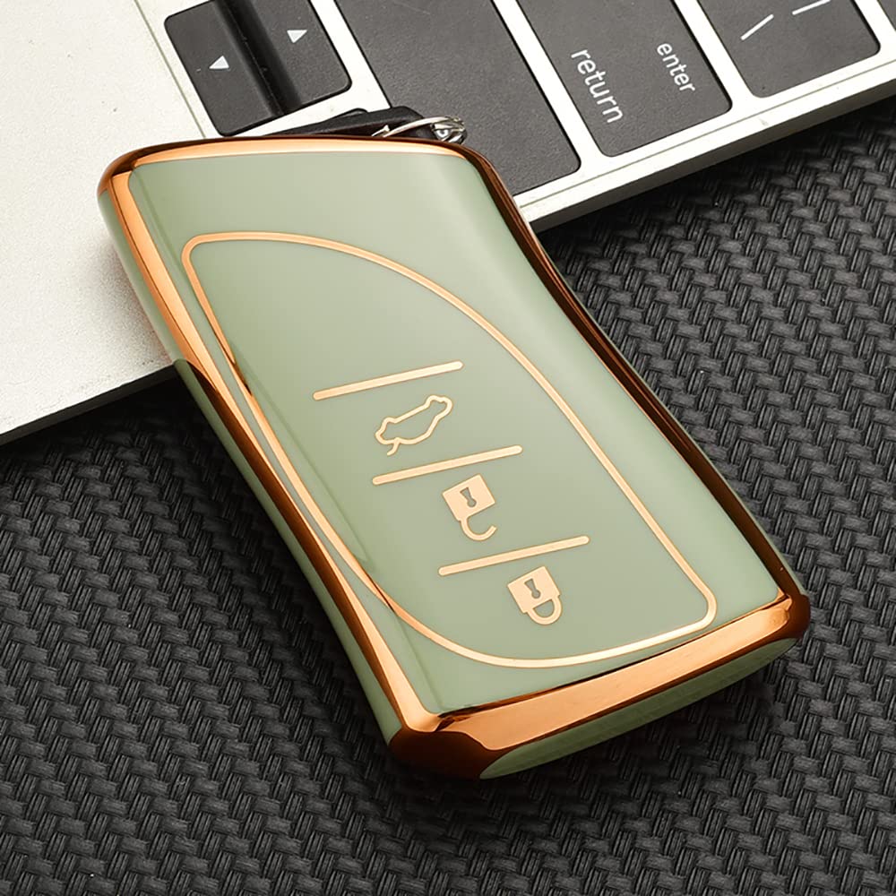 (Материал высокого качества) Изготовлен из высококачественного ТПУ силиконового материала, устойчив к истиранию, растрескиванию, легкий и долговечный, предотвращает царапины и истирание, защищает ключ вашего автомобиля со всех сторон. Уникальный дизайн с золотыми линиями делает чехол для ключей более модным. Полное покрытие не только спереди и сзади. Эффективно защитите ключ вашего автомобиля, защита от падений, ударопрочность, защита от царапин, пыленепроницаемость. Гибкий ТПУ материал пыленепроницаемый, ударопрочный и имеет роскошную отделку, сохраняя форму чехла для ключей.. Выделяйтесь в толпе с этим чехлом для ключей и привлекайте взгляды с первого взгляда. Для дней рождения и серьезных праздников этот ключник - отличный подарок для друзей и семьи