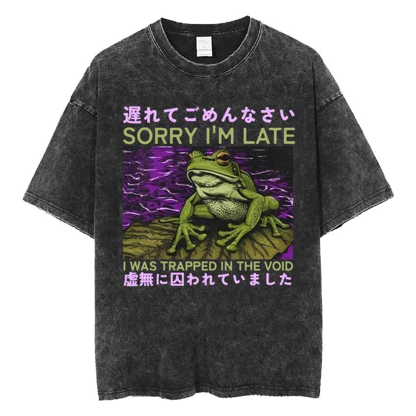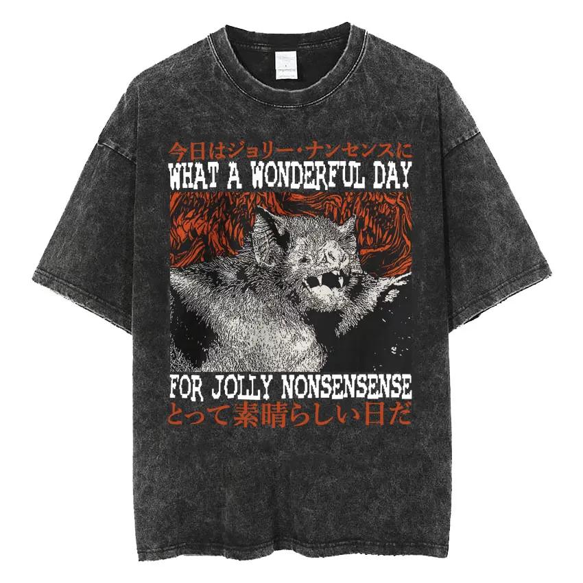 Amare Box No Thoughts Head Empty Japanese T-shirt Funny Capybara Vintage Washed T Shirt Men Women Casual Loose Short Sleeve Tees
