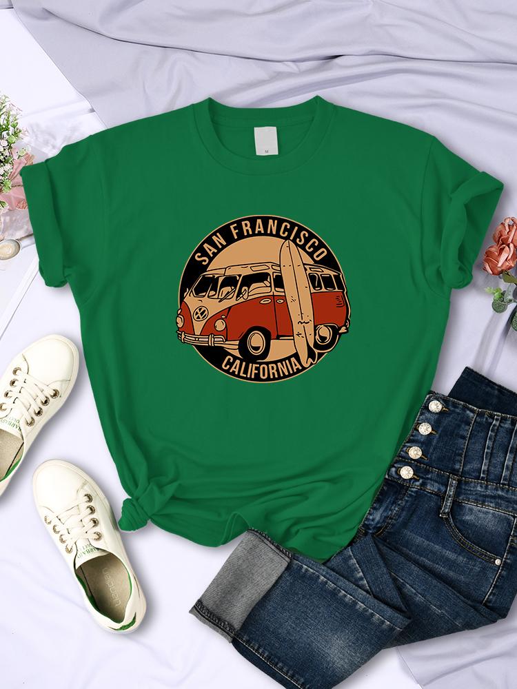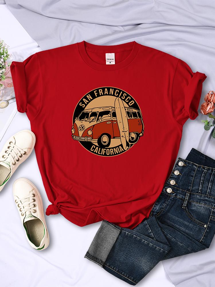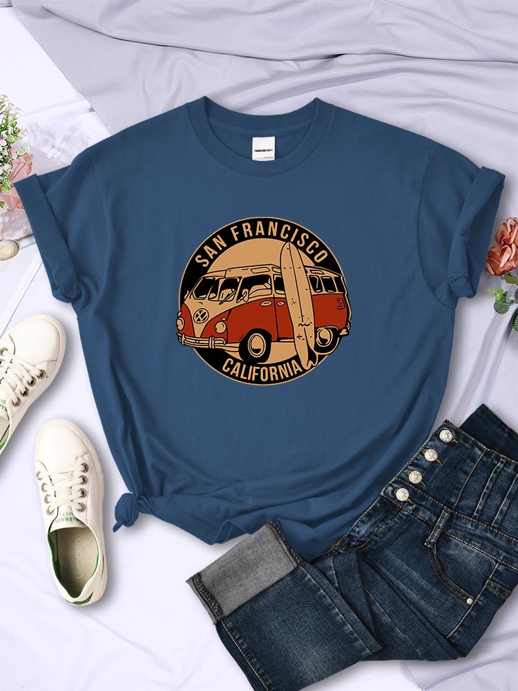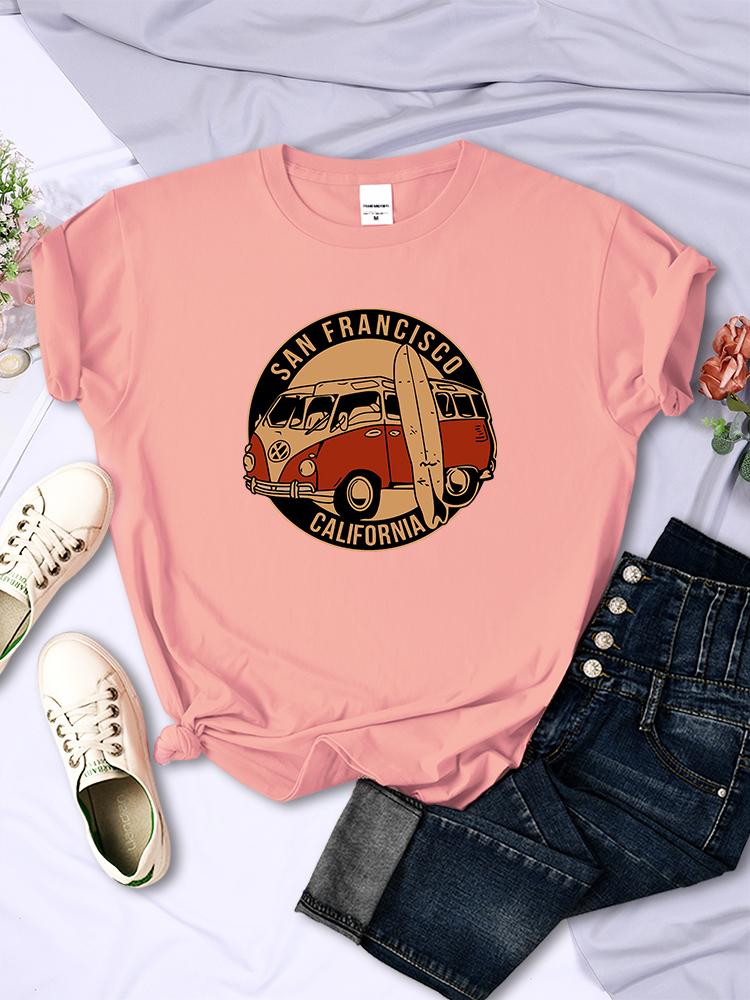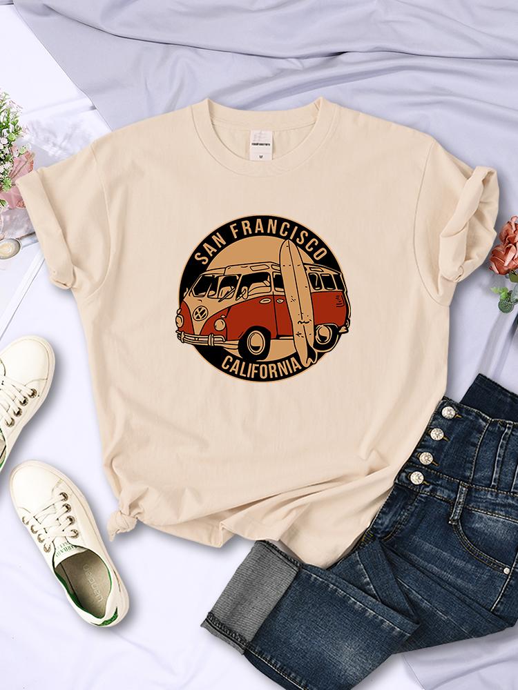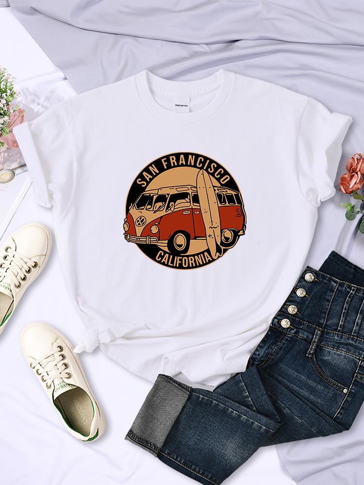 Винтажные футболки с изображением школьного автобуса Сан-Франциско, Калифорния, женские, уличный хип-хоп, с короткими рукавами, летние, дышащие, мягкие повседневные футболки