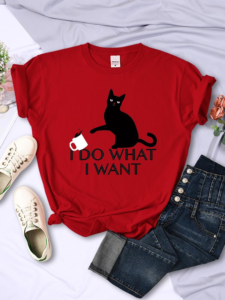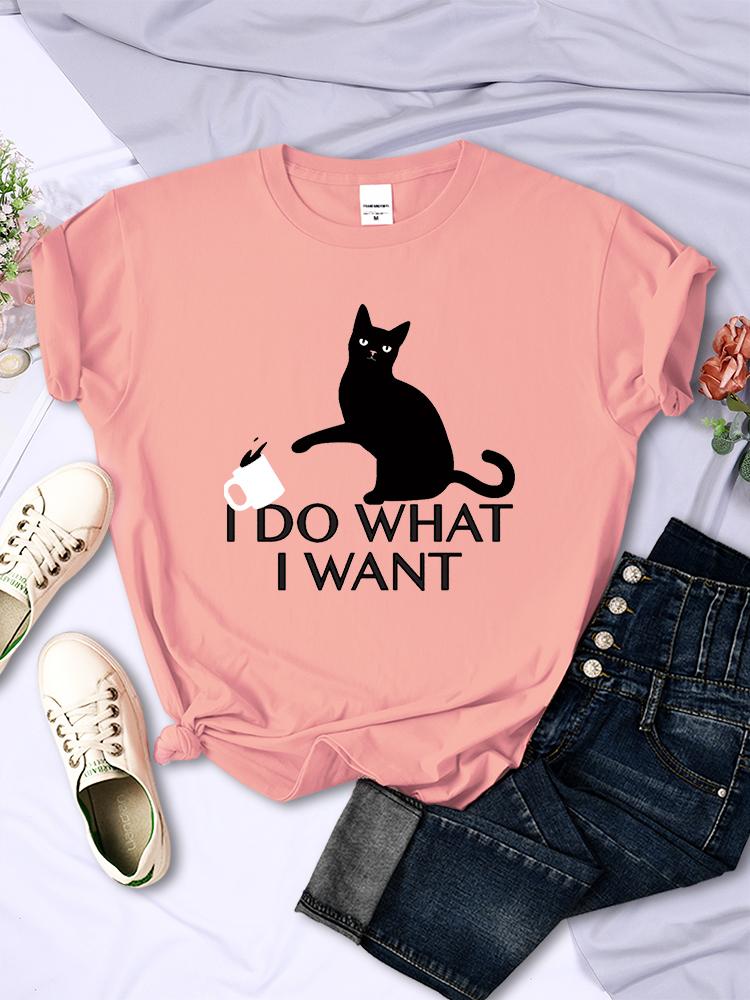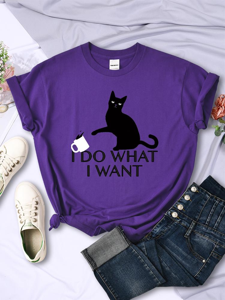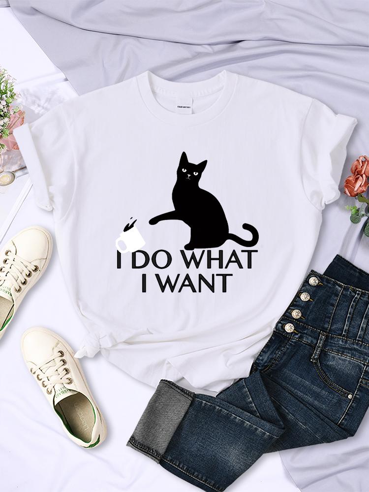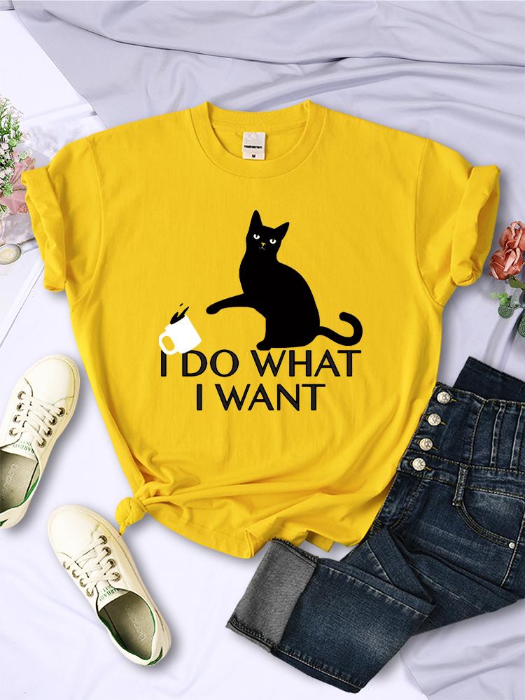 Черный кот Я делаю что хочу Письмо Женские футболки Мода Мягкий Креативный Короткий рукав Винтаж Повседневный Дышащий Женская футболка Одежда