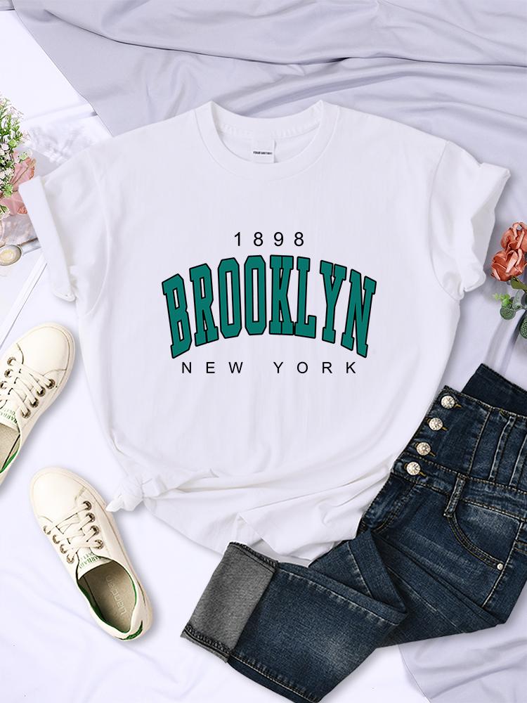 1898 Бруклин Нью-Йорк Принт Женские Футболки с Коротким Рукавом Винтажная Мода Повседневные Футболки Все-мат Круглый Вырез Дышащая Женская Одежда