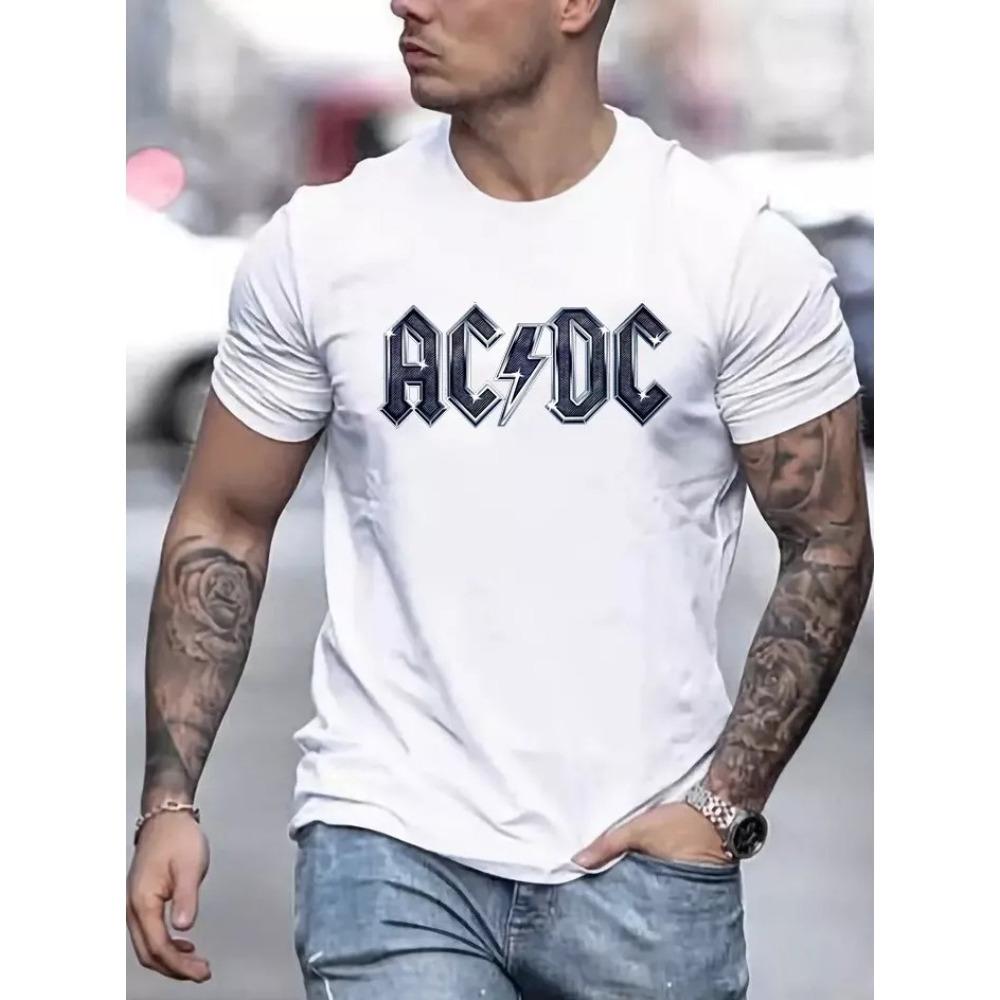 ACDC Мужская футболка Футболка Классическая рок-группа Топ Мужская Хлопок Круглый вырез Черная Свободная Готическая Тренд Футболка Винтажная Повседневная Футболка