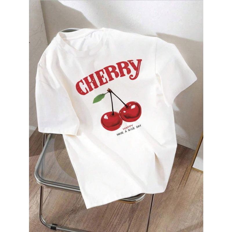 Новая женская хлопковая футболка с принтом «Веселая вишня», Ретро, Личность, Цветочный графический топ, Модная повседневная парная футболка Y2k с круглым вырезом