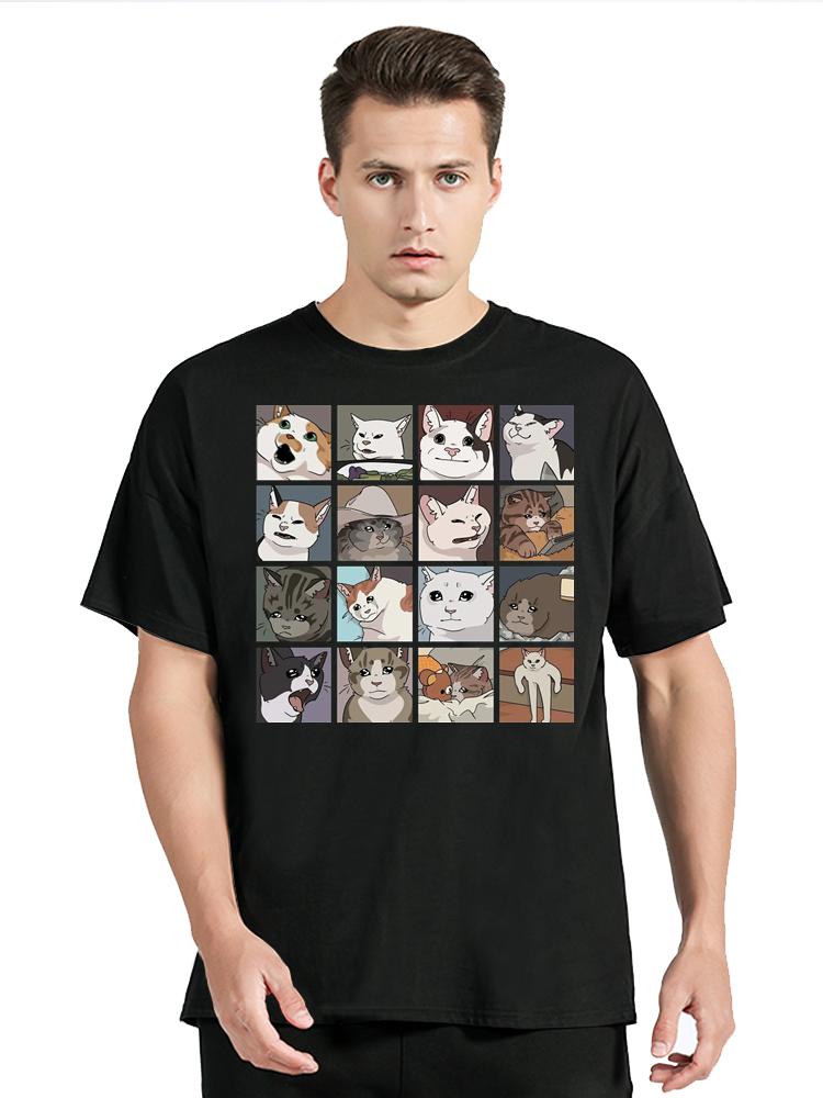 Мем Кошки Пазл Креативность Принт Футболка Мужская Одежда Пляжная Смешная Одежда Футболка Оверсайз Повседневные Хлопковые Топы Футболка с Круглым Вырезом