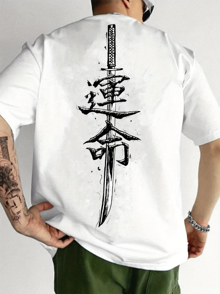 Мужская летняя повседневная футболка с графическим принтом, японский самурайский меч и судьба, круглый вырез, хлопок, модная, повседневная, трендовая футболка — купить товар онлайн с бесплатной доставкой по всему миру!
