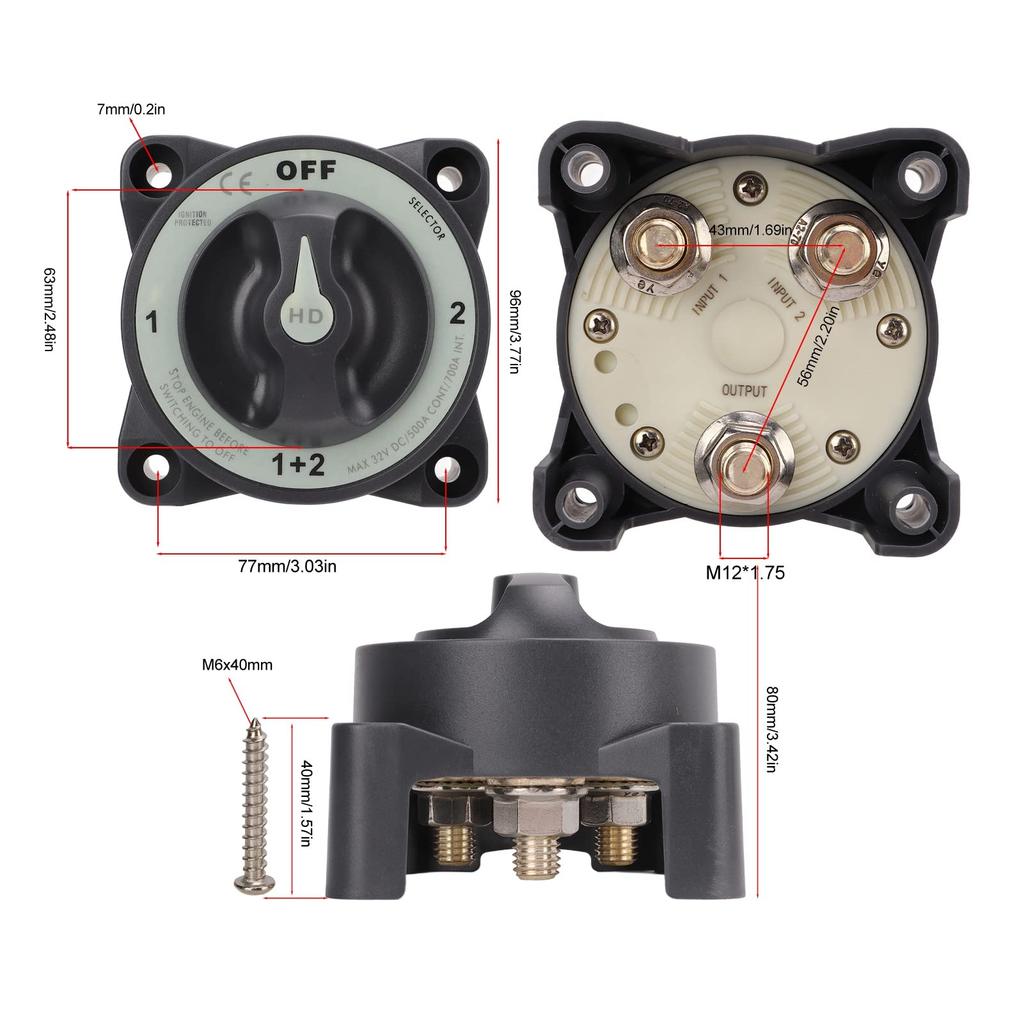 Комплект изолятора KIMISS, Морской выключатель разъединителя 500A Сверхмощный 4-позиционный переключатель-селектор для автодома/лодки