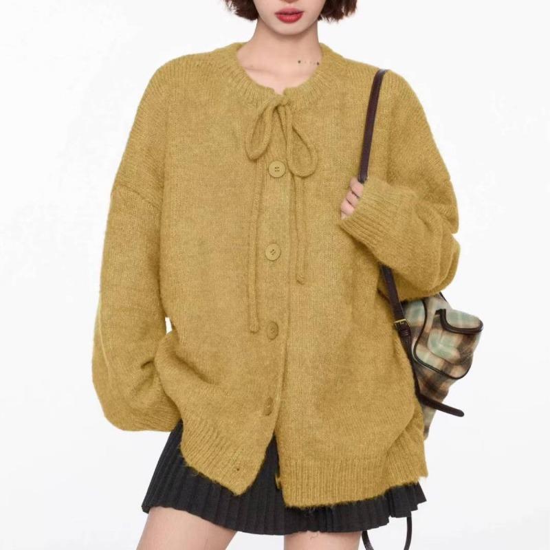 Осень и зима ретро свитер на шнуровке куртка женская свободный ленивый стиль новый вязаный кардиган топ женский