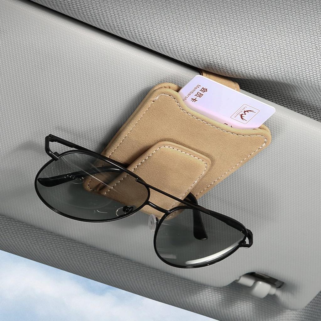 KaminoKa Sunglasses Holder Eyeglass Holder Sun Visor Storage Card Case Ticket Holder (Beige)