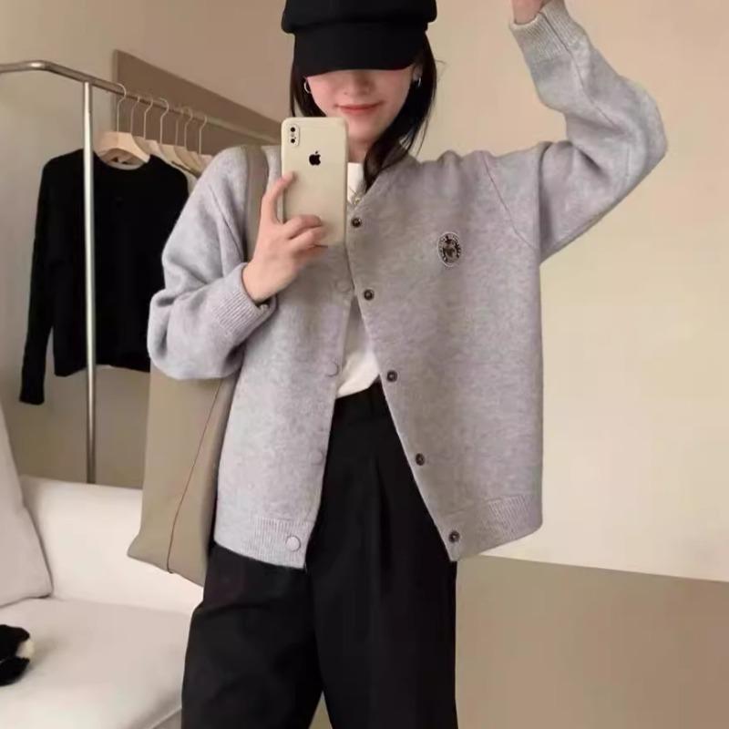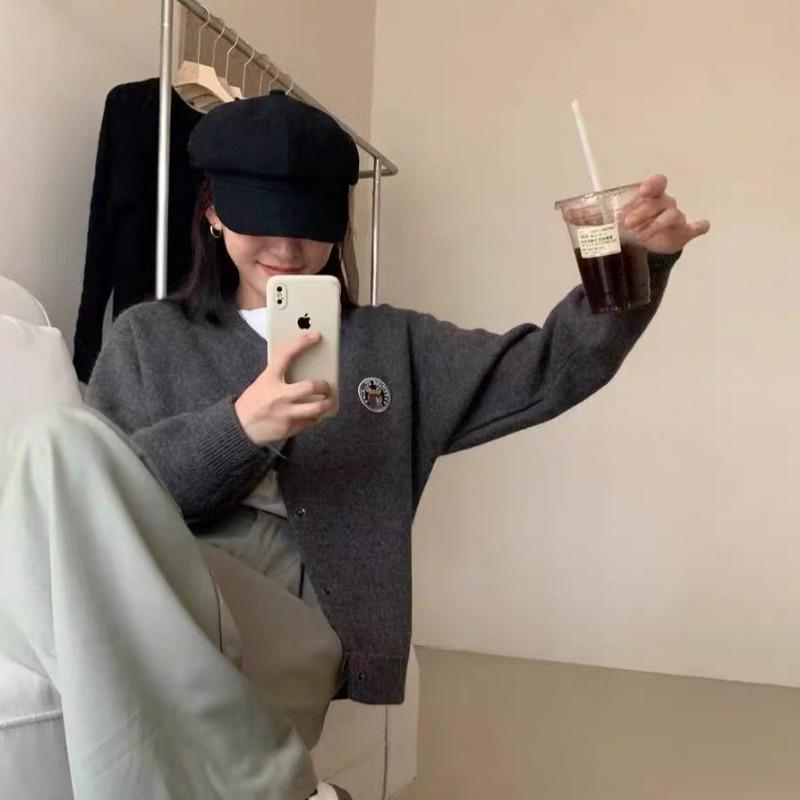 Осень и зима новый мягкий восковой нежный свитер-жакет женский с круглым вырезом свободный универсальный вышитый вязаный кардиган-жакет