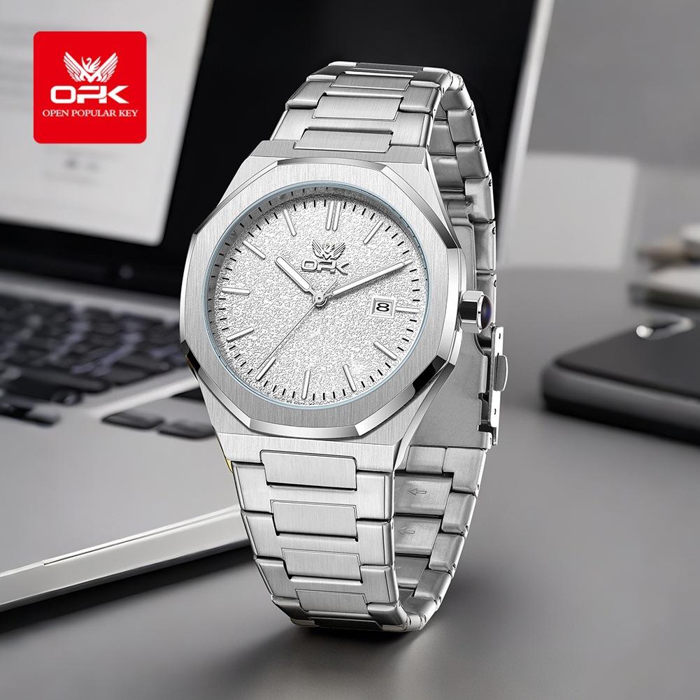 OPK Часы восьмиугольные стальной ремешок мужские часы одинарный календарь люминесцентные кварцевые часы