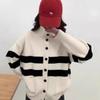 Осень и зима новый ретро колледж свободный свитер с длинным рукавом женский ленивый ветер воротник-стойка полосатая вязаная куртка