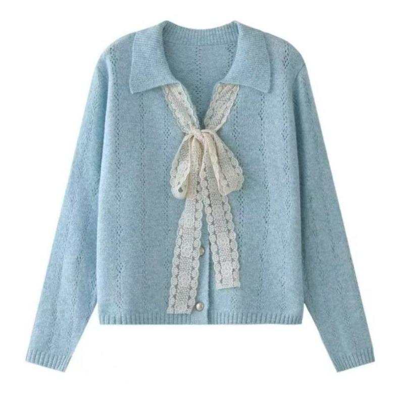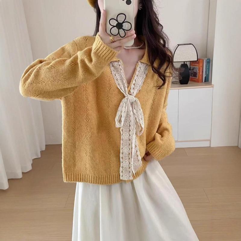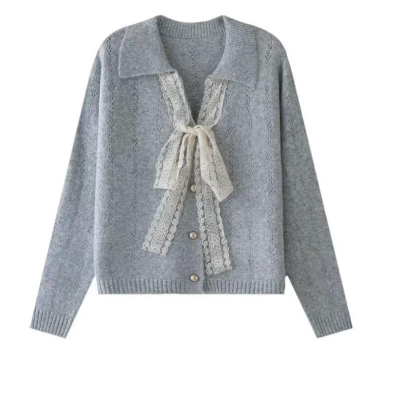 Женский осенне-зимний новый маленький вязаный кардиган топ с нежным ветром, бантом и шнуровкой