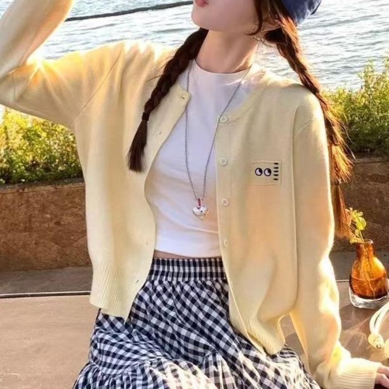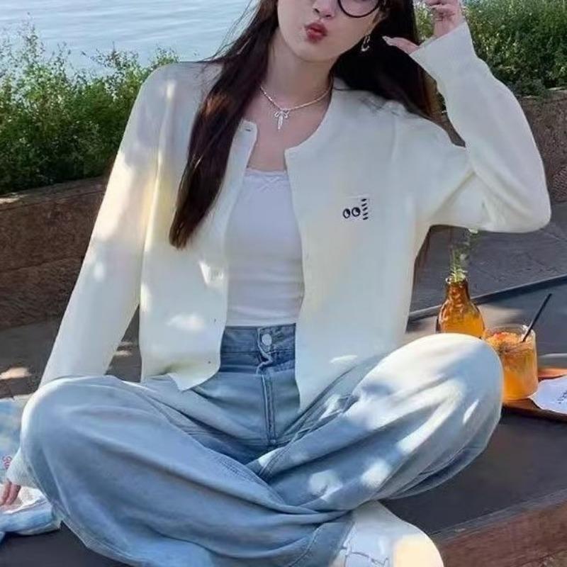 Простой вязаный кардиган ранняя осень новый женский дизайн одежды чувство длинный рукав мягкий восковой универсальный короткий топ