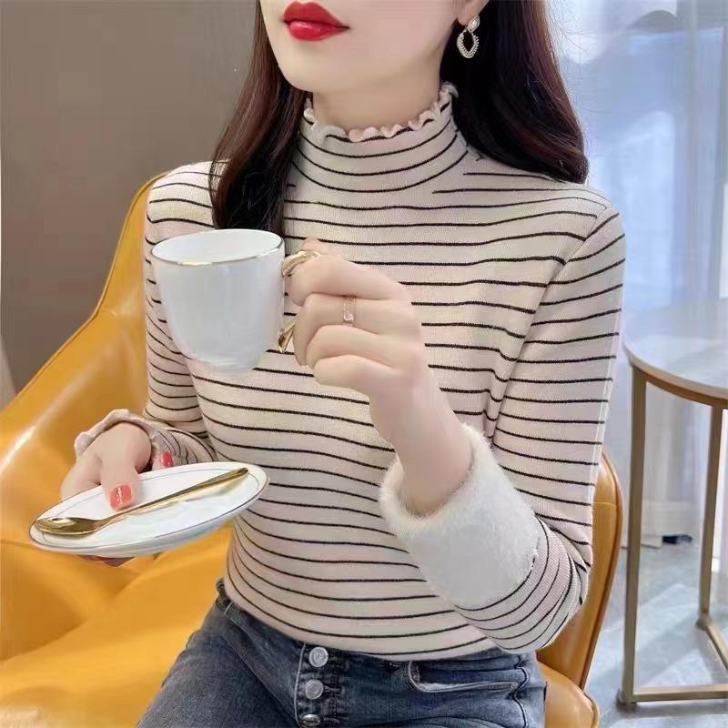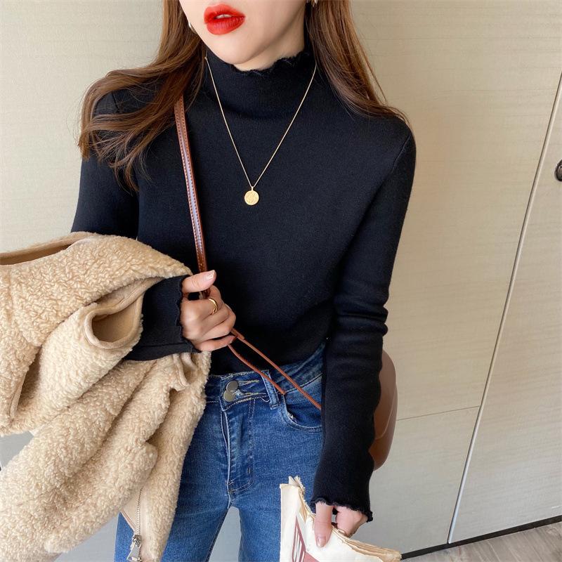 Женский зимний свитер из бархата с утолщением, полувысоким воротником, базовая рубашка с новой интегрированной бархатной отделкой в виде грибной кромки, вязаный топ