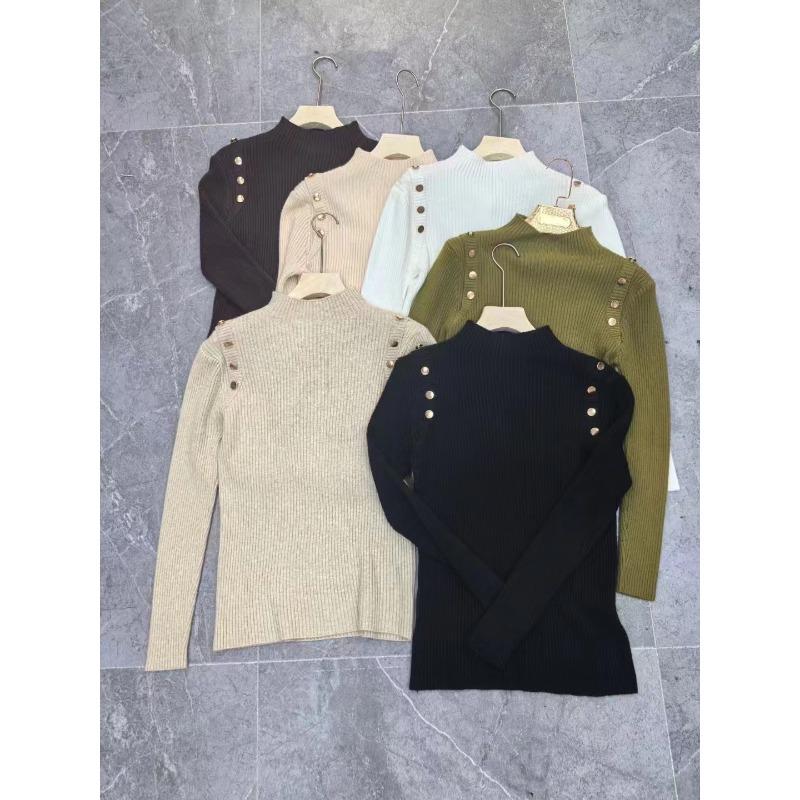 Вязаный пуловер на пуговицах, осенне-зимний вязаный свитер, топ с полувысоким воротником, свитер приталенного силуэта, новый