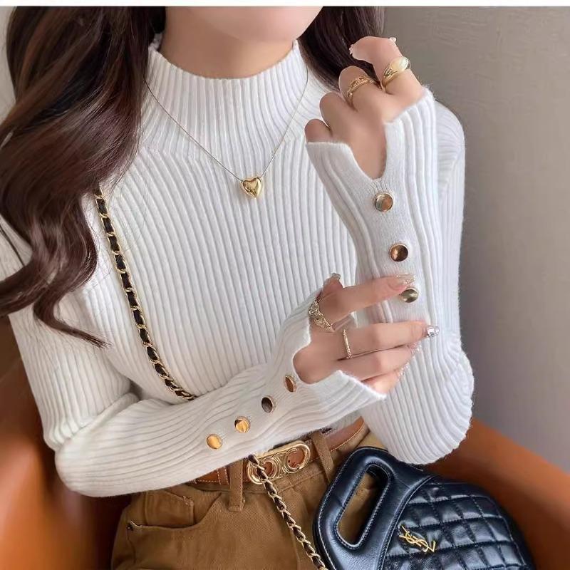 Женская осенне-зимняя новая высококлассная полуводолазка, вязаный свитер с длинным рукавом
