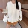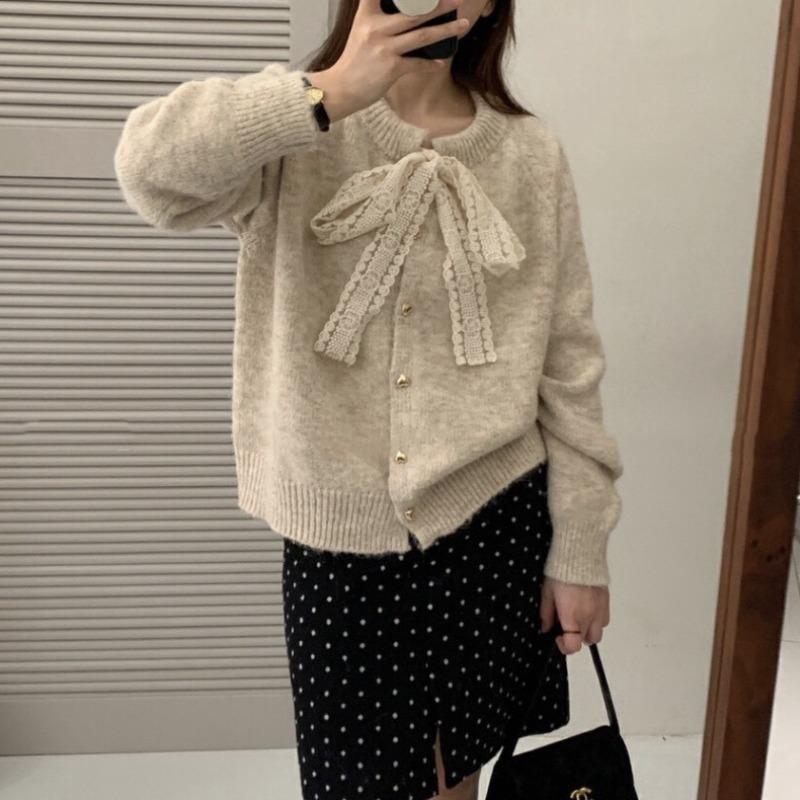 Вязаный кардиган женский на шнуровке с бантом, с круглым вырезом, осенне-зимний, свободный, с золотыми пуговицами в виде сердечек