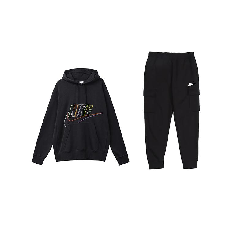 Nike Логотип Письмо Американский Винтаж Вышитое Худи и Флис Теплые Брюки с Манжетами Комплект Толстовки Мужской Комплект Толстовки Черный DX0542-010+CD3130-010