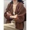 Винтажный ленивый ветер V-образный вырез вязаный кардиган женская одежда осень и зима новый свободный высококлассный свитер с длинным рукавом куртка женская