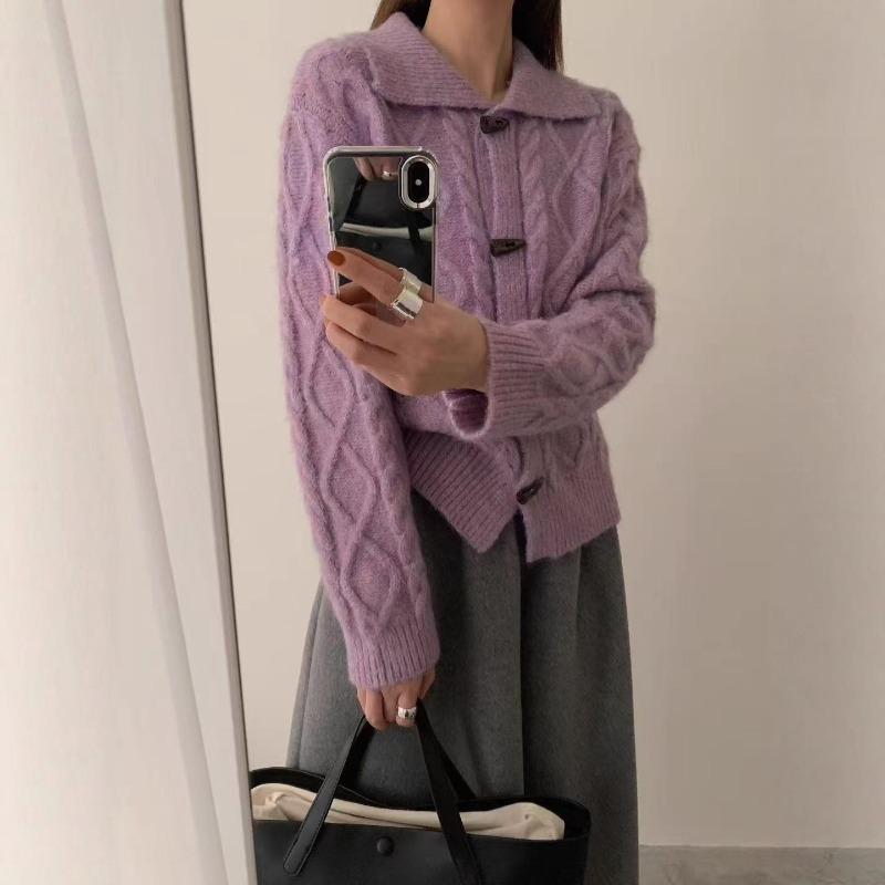 Ретро кардиган крупной вязки с отложным воротником и застежкой на роговую пуговицу, женский осенне-зимний, новый, свободный и тонкий, мягкий и восковой свитер-жакет — купить товар онлайн с бесплатной доставкой по всему миру!