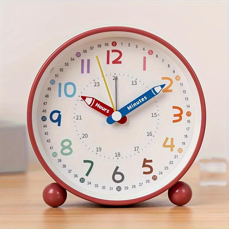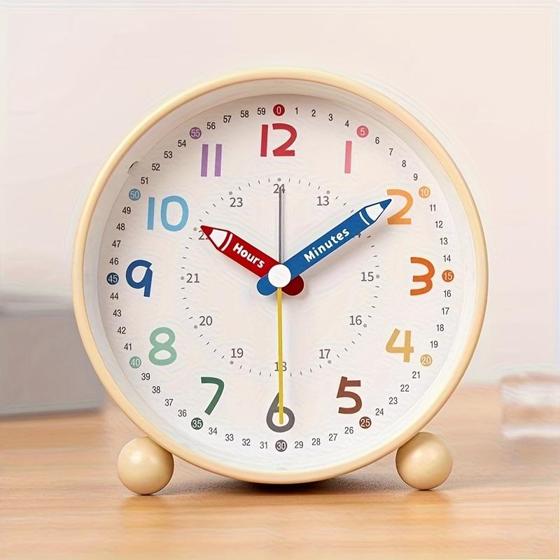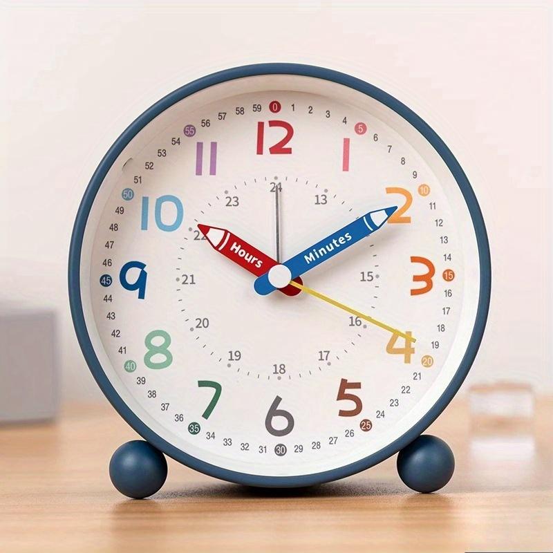 11,43 см Бесшумный обучающий будильник с цветными цифрами, стрелками, большим дисплеем, работает от батареек, батарейка АА в комплект не входит, настенные часы