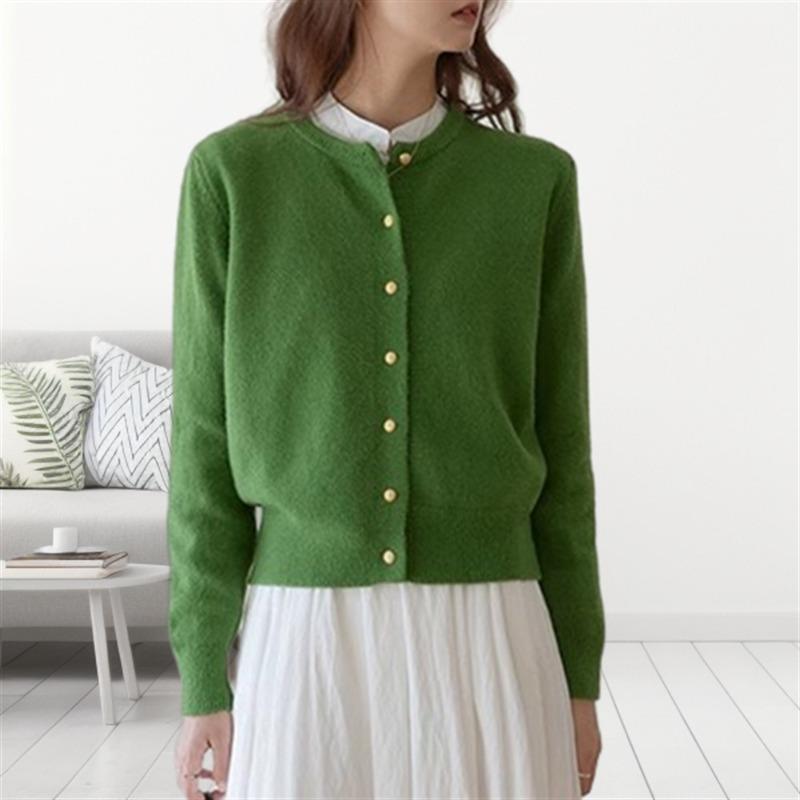 Нежный ретро маленький кардиган с круглым вырезом и золотой пряжкой, женский осенний свободный повседневный базовый вязаный жакет — купить товар онлайн с бесплатной доставкой по всему миру!