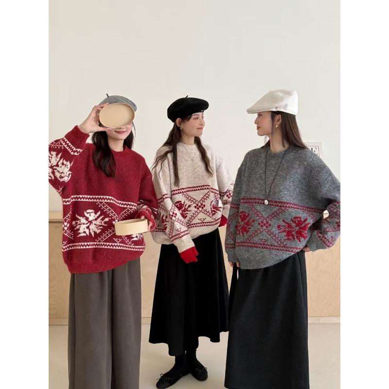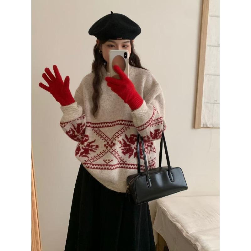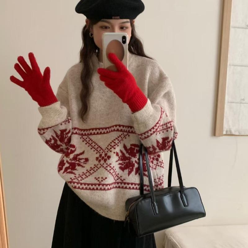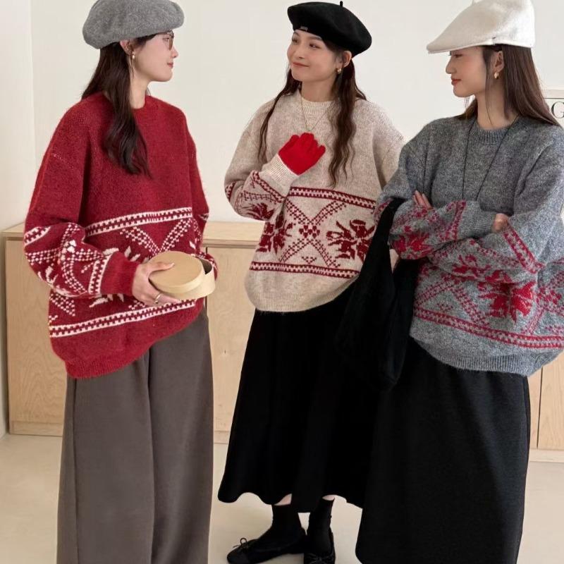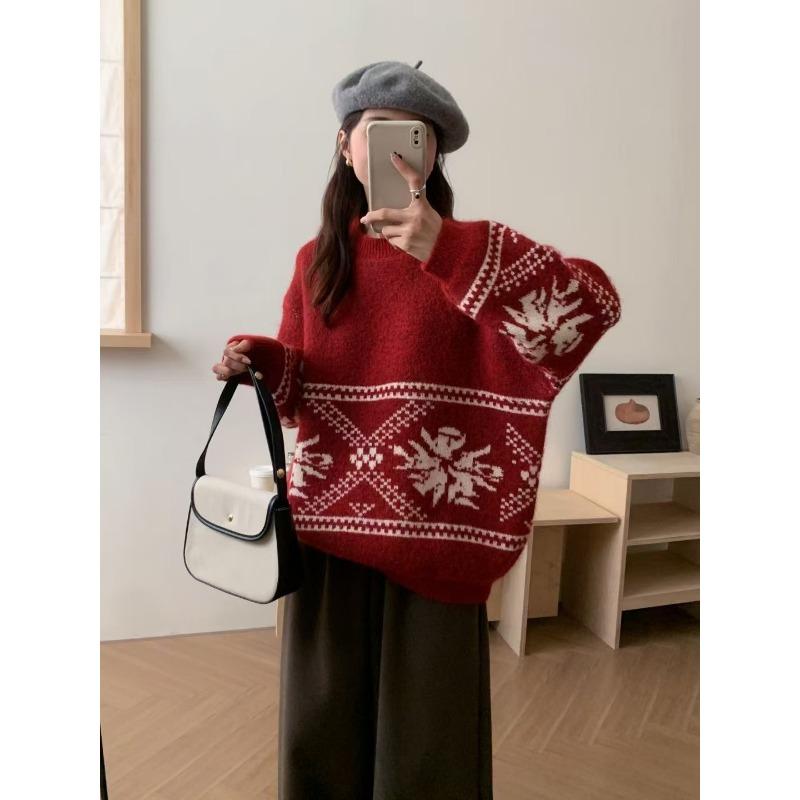 Винтажный рождественский вязаный пуловер для женского красного осенне-зимнего нового ленивого ветра свободный мягкий восковой вязаный свитер для женщин