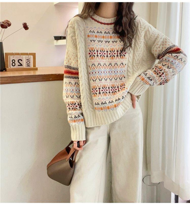 Винтажный трикотажный пуловер с круглым вырезом, женский осенне-зимний новый свободный повседневный трикотажный свитер «Фэр-Айл» женский — купить товар онлайн с бесплатной доставкой по всему миру!