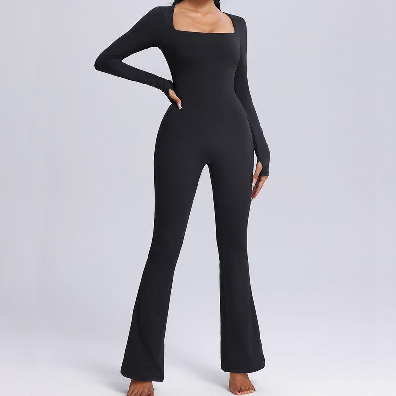 European and American Kardashian Style Yoga Bodysuit Long Sleeves One-Piece Yoga Clothes with Chest Pad Horn Tight One-Piece