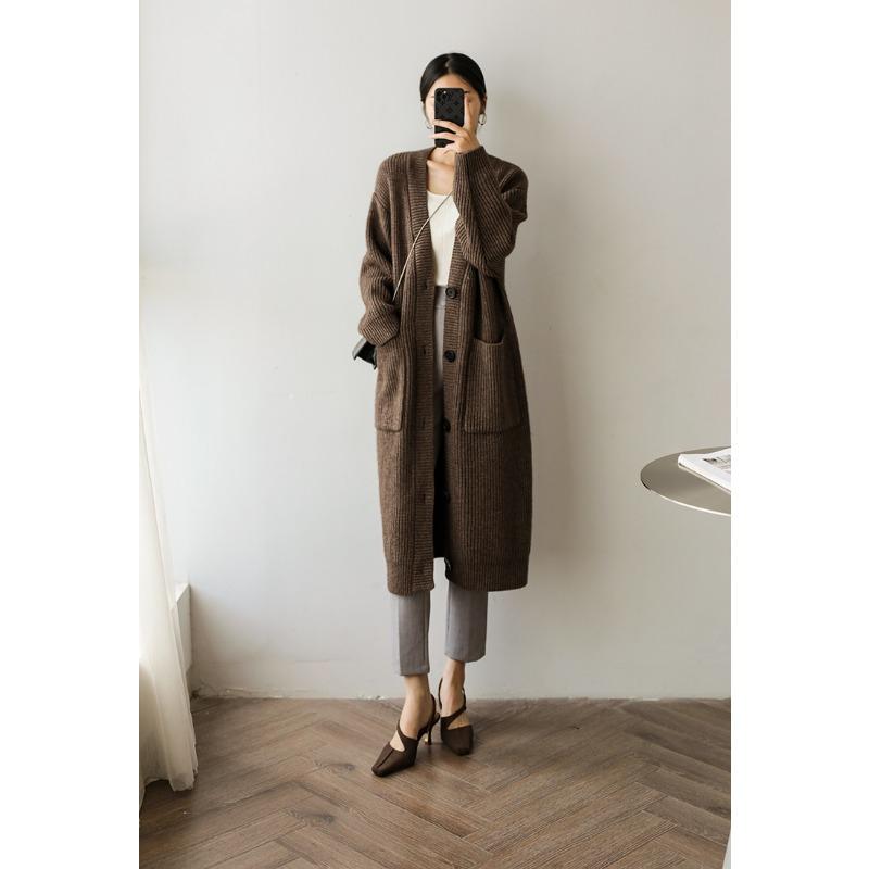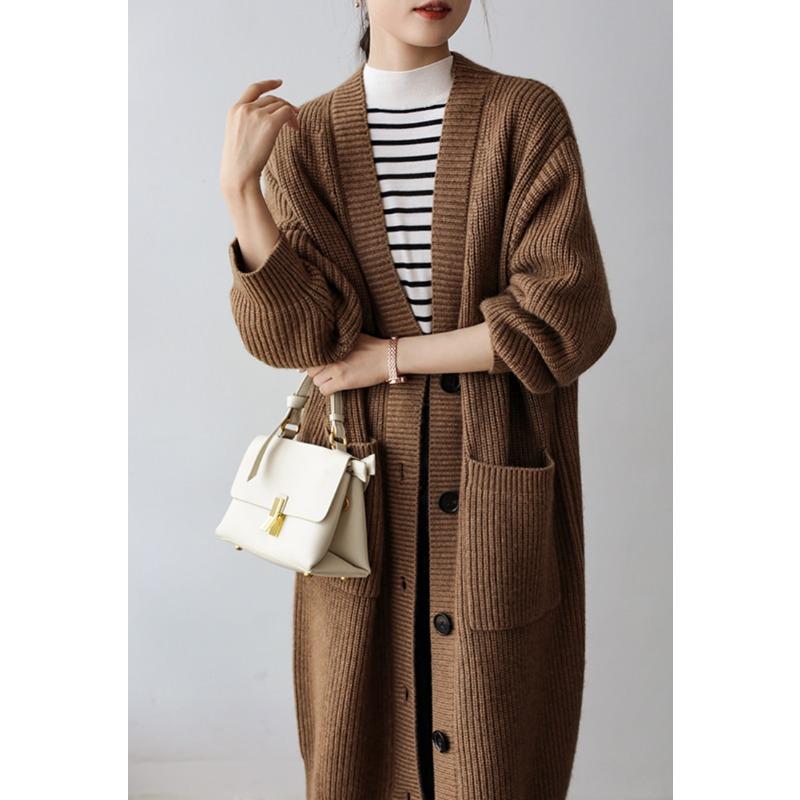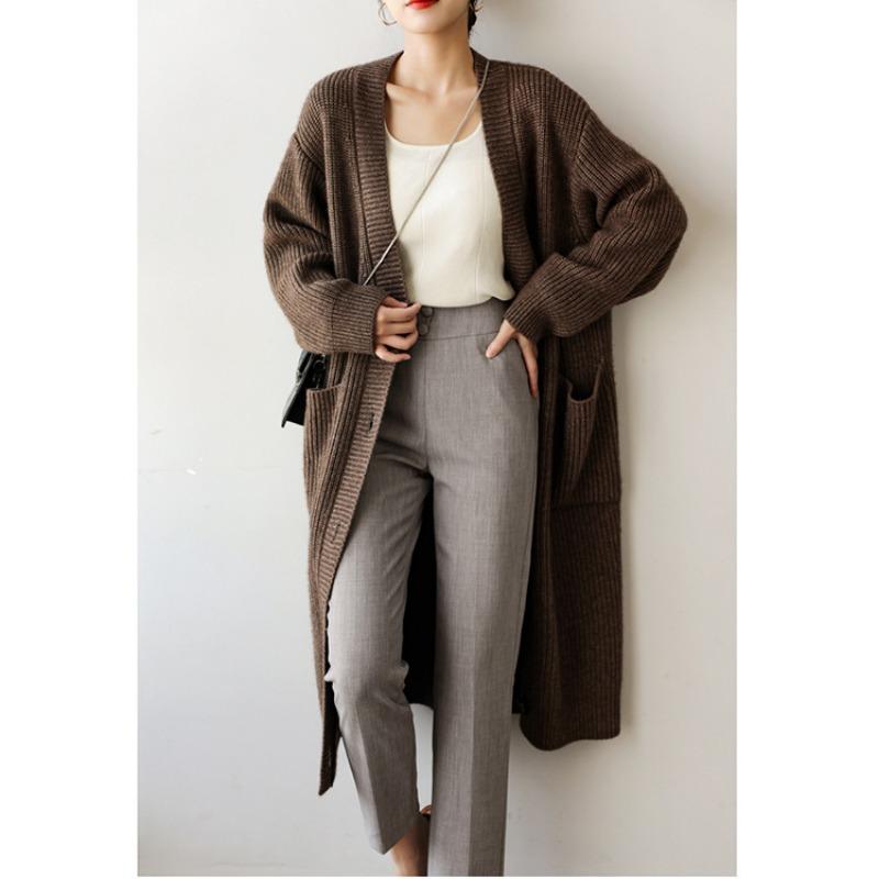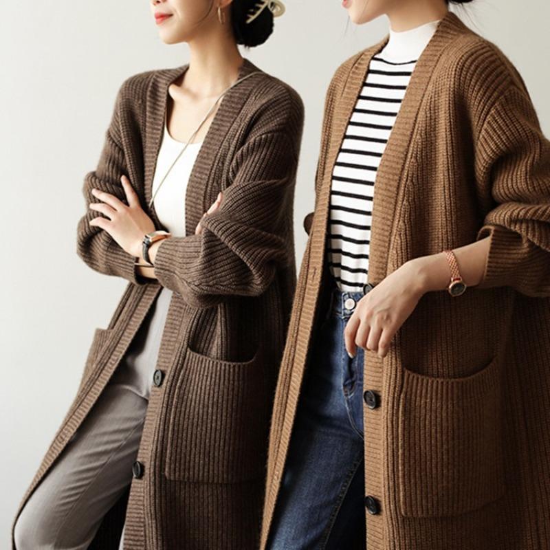 Утепленный кардиган средней длины для женщин, осенне-зимний, в стиле ретро, свободного кроя, ленивый стиль, свитер средней длины