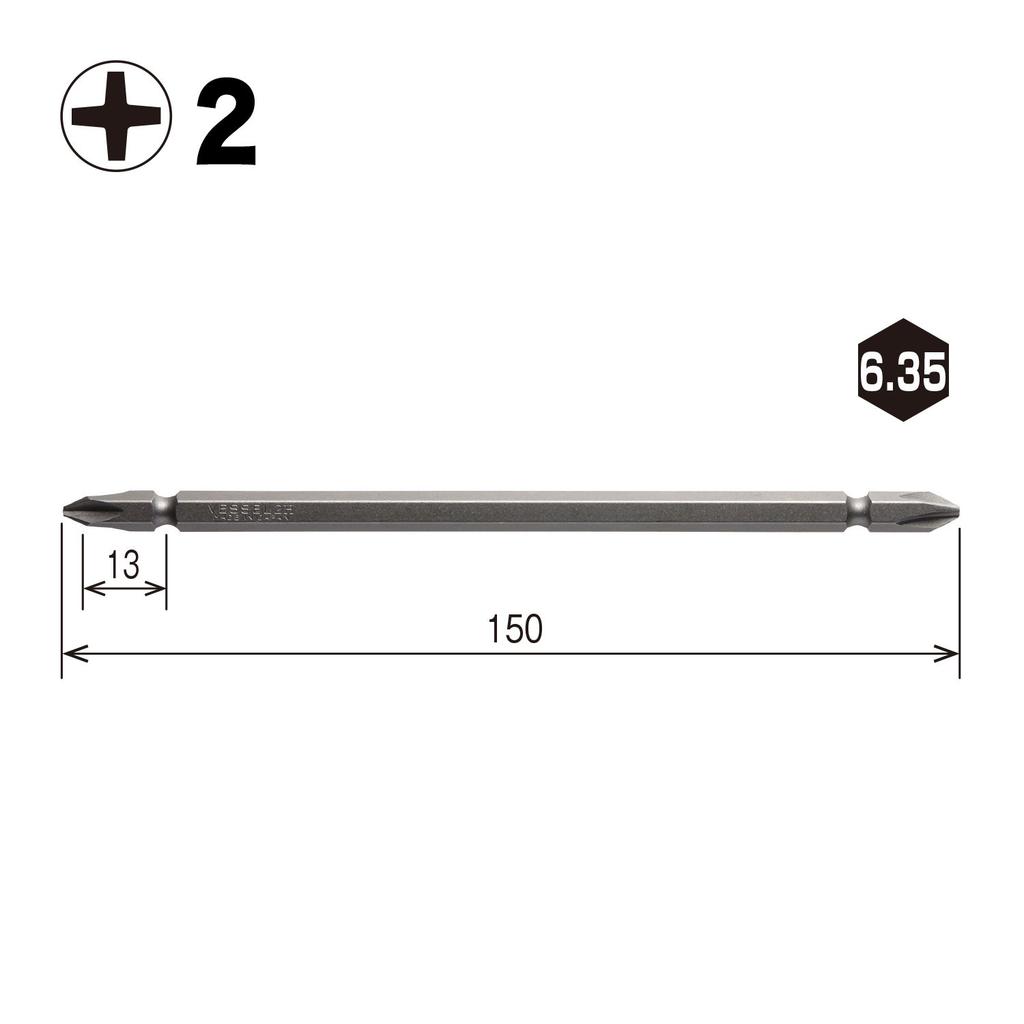 Двусторонний бит VESSEL с магнитом, для пневматических и электрических шуруповертов, +2 x 150 мм, Набор из 10 шт., Твердость H (Высокая твердость), M-A14 ZP