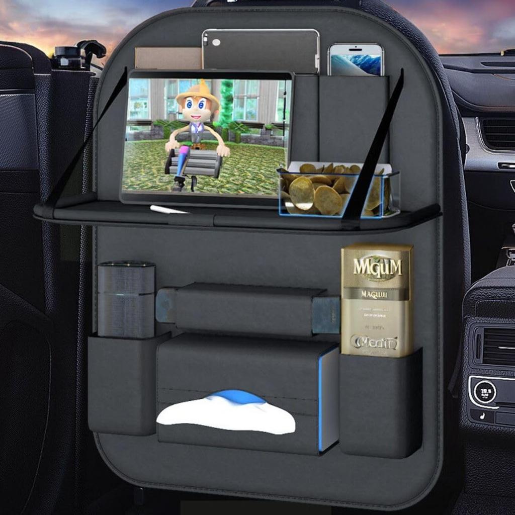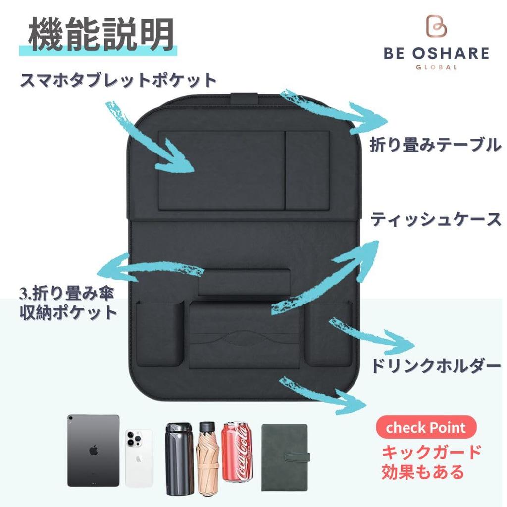 🚘 [Includes Table and Large Storage Capacity] The included folding table makes it convenient for eating and using your laptop. The numerous storage pockets allow you to store cables, your phone, books, children's toys, snacks, and other small items, keeping your car clean and tidy. It also doubles as a kick guard, so even if it gets dirty from kicking, you can wipe it clean with a wet tissue.