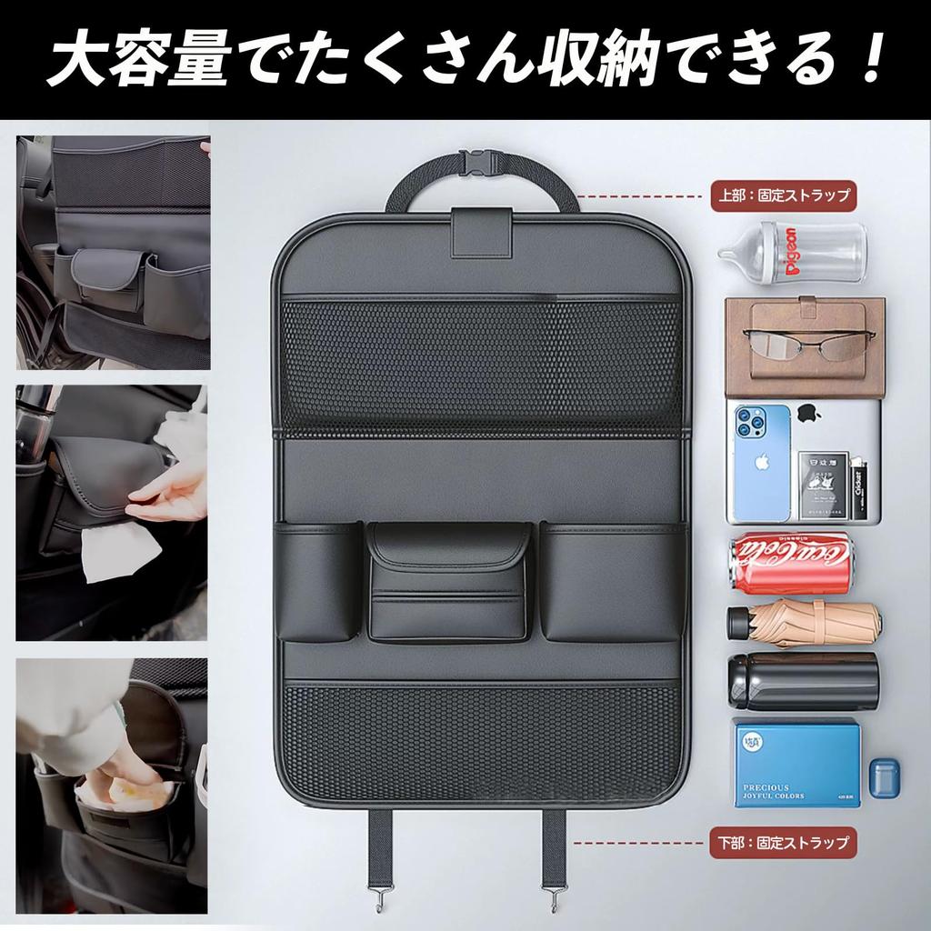 [Многофункциональные карманы для хранения] Различные карманы для хранения позволяют аккуратно разместить ваши вещи в машине. Вы можете хранить различные мелкие предметы, такие как смартфоны, iPad, книги, салфетки, зонты, напитки, игрушки, закуски, детские принадлежности и т. д., что делает его очень удобным для повседневных прогулок и путешествий.
