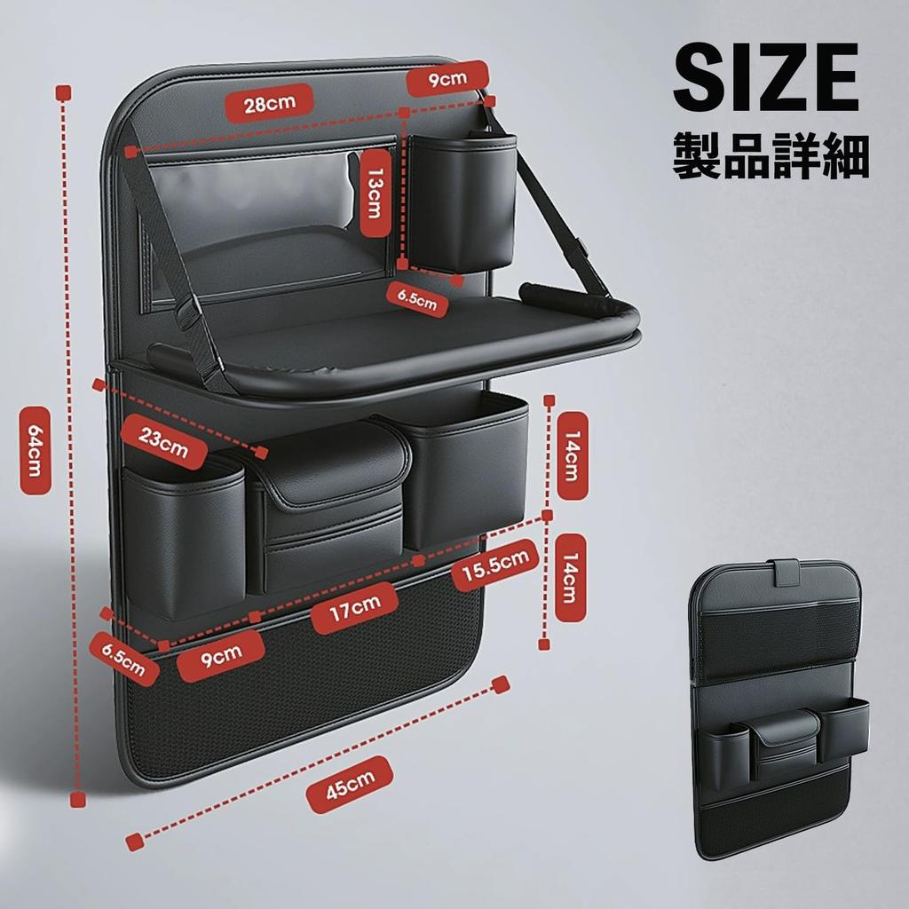 Характеристики складного стола: Когда не используется, стол складывается, чтобы не мешать.. В разложенном виде стол имеет размеры примерно 45 см x 23 см (грузоподъемность: 4,5 кг). Подходит для большинства автомобильных сидений, включая кей-кары, внедорожники и минивэны.. Он также может управлять планшетами. Многофункциональные карманы для хранения: Различные карманы для хранения позволяют аккуратно разместить ваши вещи в салоне автомобиля.. В нем можно хранить различные мелкие предметы, включая смартфоны, iPad, книги, салфетки, зонты, напитки, игрушки, закуски и детские принадлежности, что делает его чрезвычайно удобным для повседневных прогулок и путешествий.. Аккуратный и удобный салон автомобиля: Организуйте и храните предметы, которые обычно скапливаются в салоне автомобиля.. Это обеспечивает комфортное и приятное вождение для вашей семьи и друзей.. Это повышает комфорт салона, улучшает качество автомобиля и повышает ваше удовлетворение.. Стильный дизайн поддерживает порядок в вашем автомобиле! Предотвращает появление пятен: Спинка сиденья закрыта, что предотвращает удары обуви о сиденье, когда вы скрещиваете ноги, или удары ногами детей, которые пачкают сиденье.. [Простая установка] Для установки инструменты не требуются; просто проденьте ремень через подголовник. Совместим со многими типами автомобилей. После установки