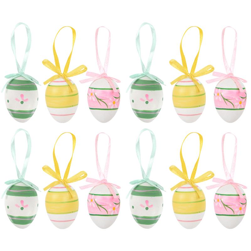 12 шт./пакет Пасхальные яйца Счастливой Пасхи Вечеринка Пластиковая подвеска в виде яйца для дома, подвесные украшения на дерево, наполнитель для детской подарочной корзины, украшение