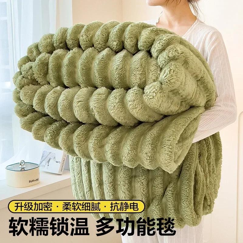 Однотонное роскошное одеяло из искусственного кроличьего меха, мягкое теплое зимнее одеяло с сохранением тепла, для офиса, дома, путешествий