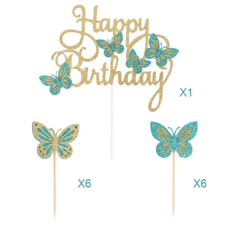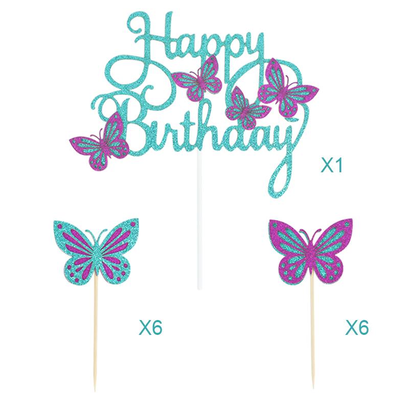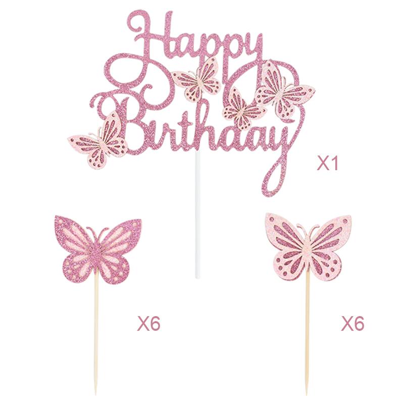 13 шт. Розовые бабочки С днем рождения Топпер для торта Дети Девочка 1-й день рождения Украшение для торта Десерт Топпер для кексов Принадлежности