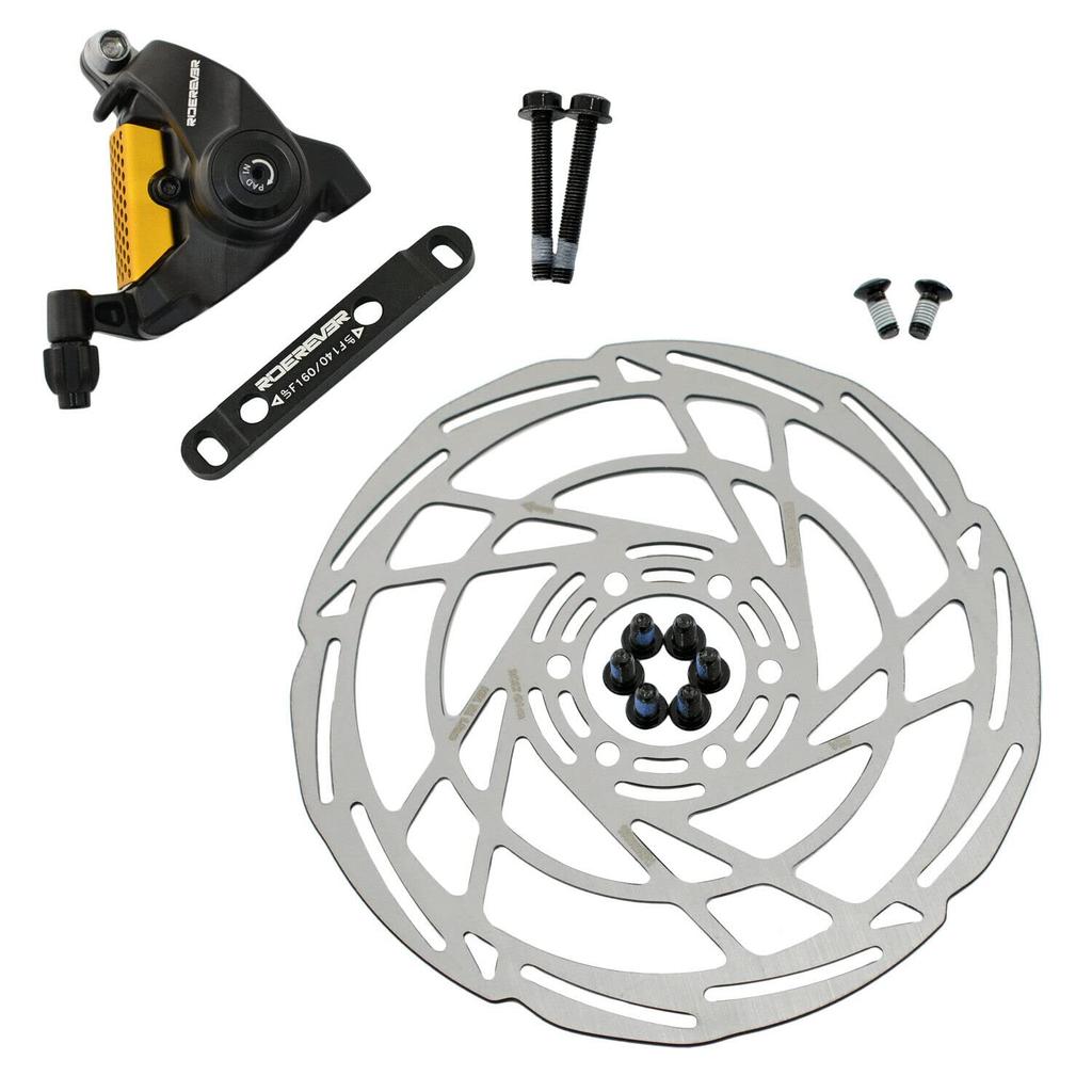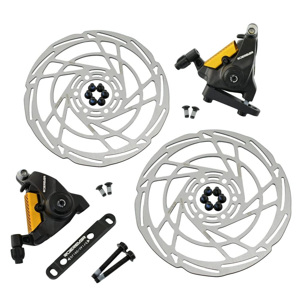 RIDEREVER Flat Mount Mechanical Disc Brake Set 160mm Black x RD2320 MCX-2 Dual-piston w/ Rotors, Gold,