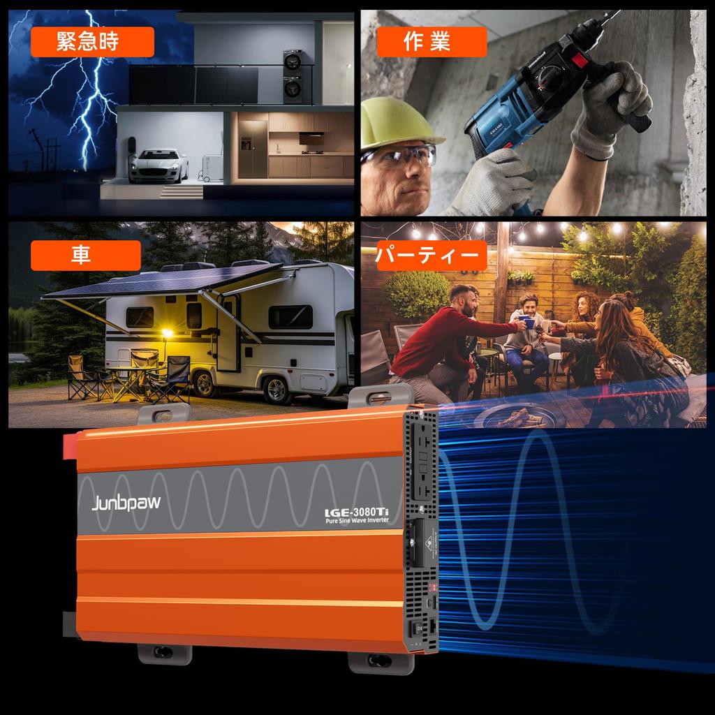 Инвертор 3080 Вт с чистой синусоидой, с GFCI (устройство защиты от замыкания на землю), 12 В постоянного тока на 230 В переменного тока, пиковая мощность 9000 Вт, USB 5 В и проводной пульт дистанционного управления для и солнечной генерации