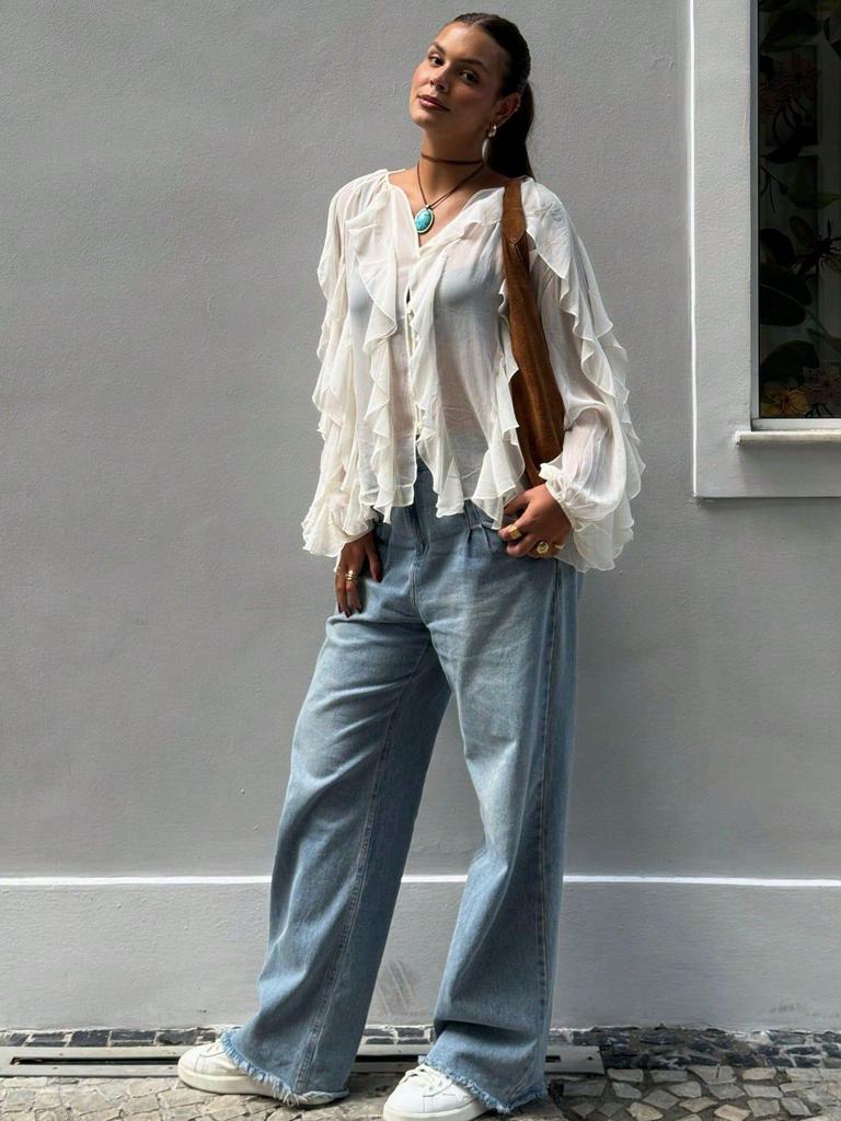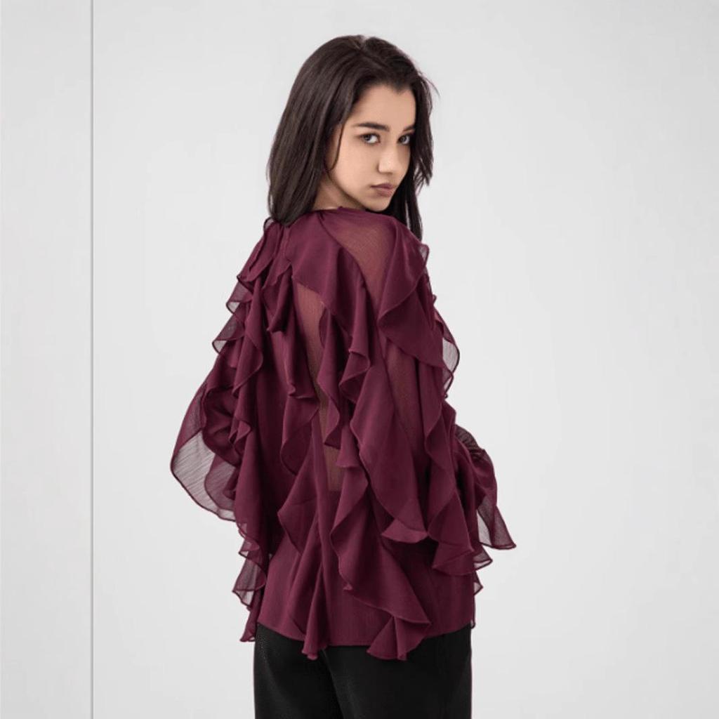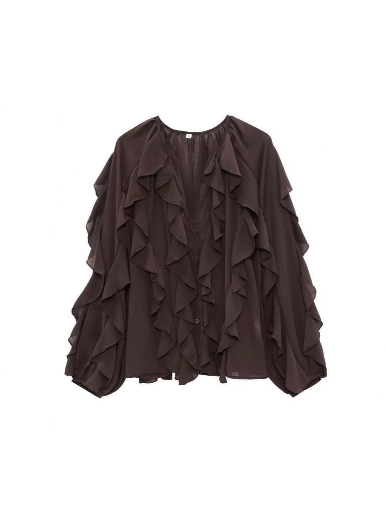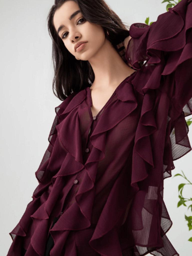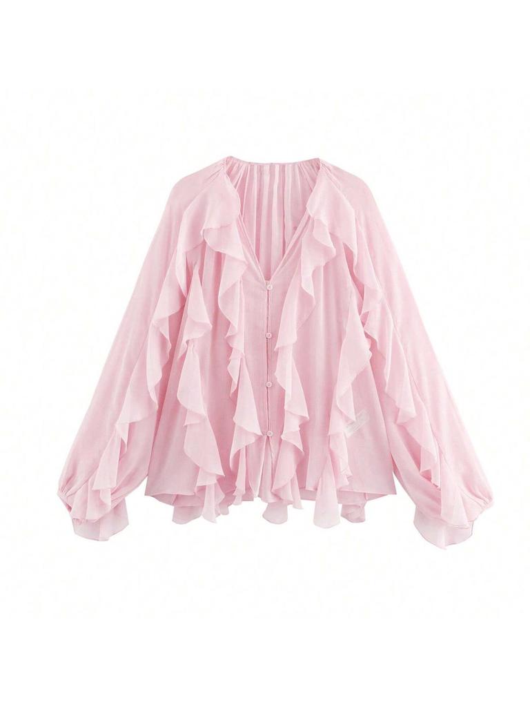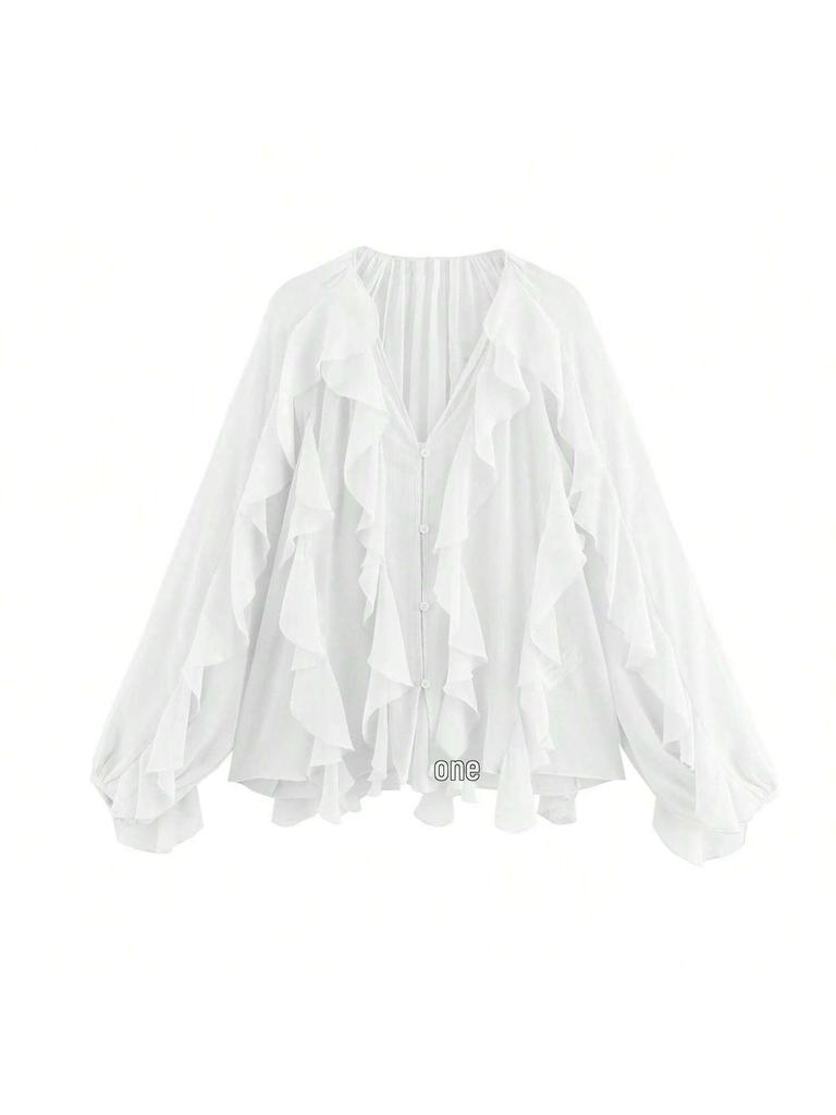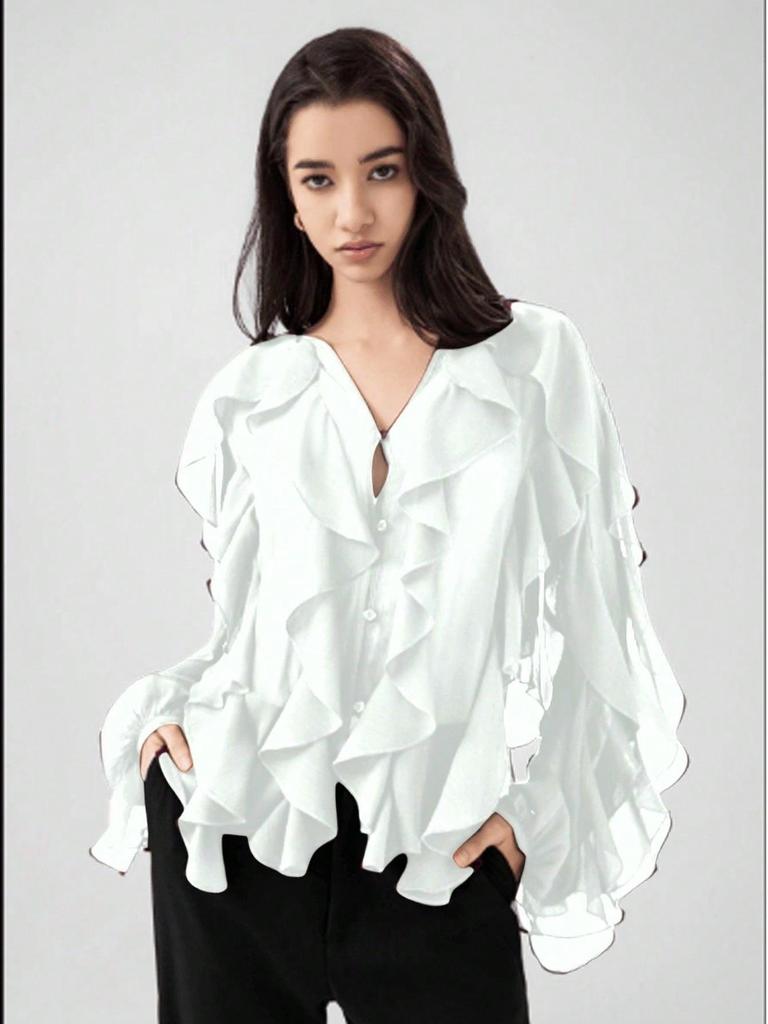 Европейская и американская женская рубашка-пуловер с V-образным вырезом, многослойным дизайном и длинными рукавами, для весны/лета