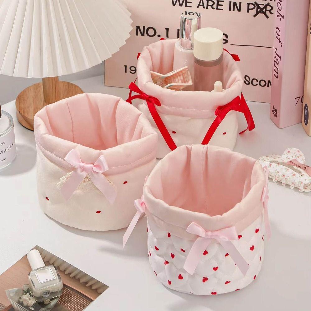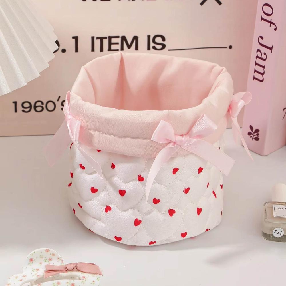 Милая коробка для хранения любви с бантом, стеганая хлопковая коробка-органайзер, мультяшный каркас для хранения большой вместимости, украшение для дома