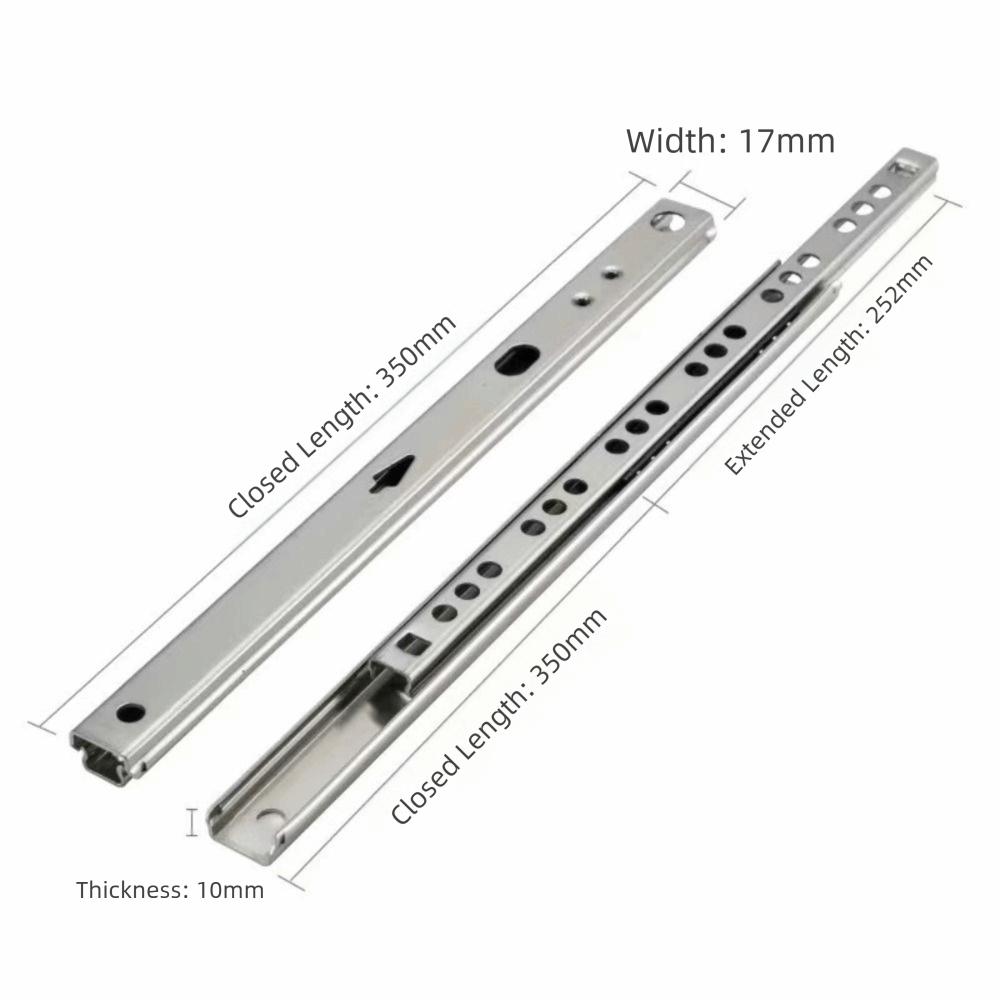 2 шт. Новые направляющие для ящиков с подшипниками плавного скольжения, двусторонние, ширина 17 мм, шариковые направляющие для ящиков, кухонные