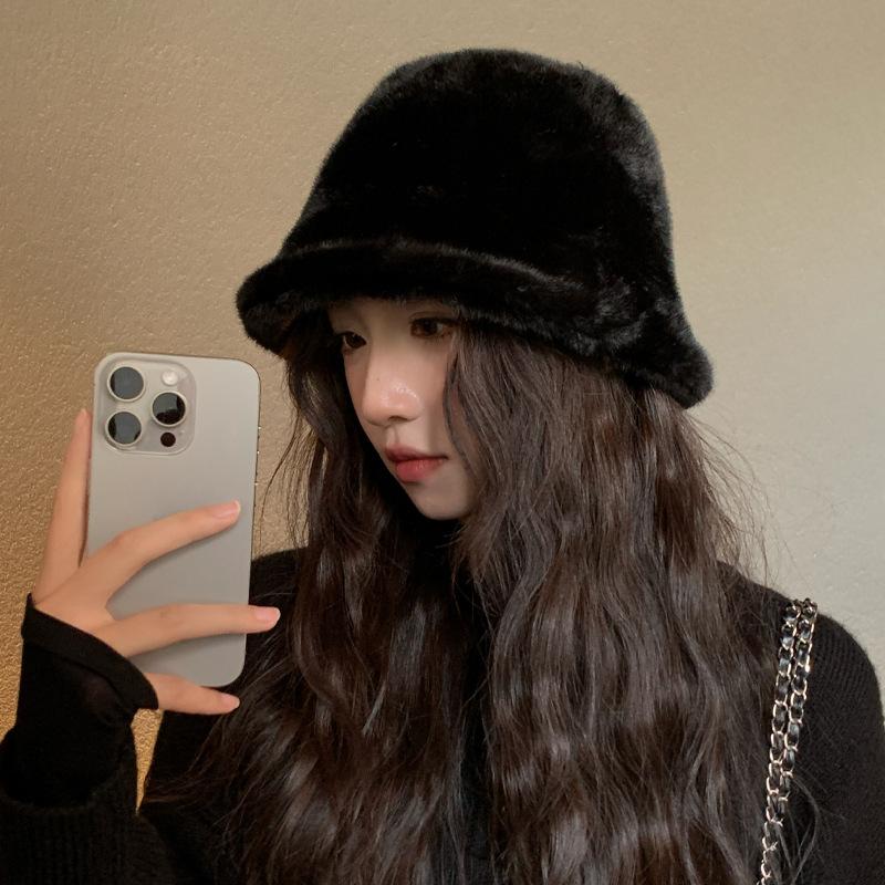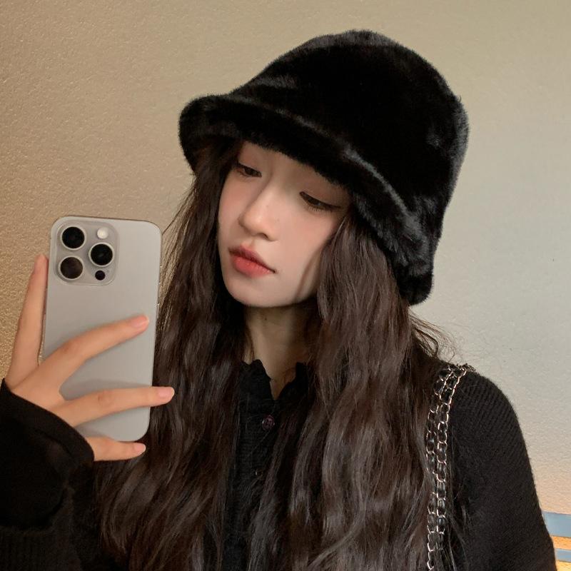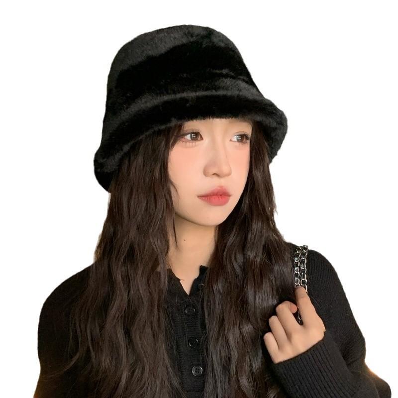 Корейская версия новой осенне-зимней шляпы для женщин, имитация норкового меха, однотонная универсальная шляпа-панама, зимняя ветрозащитная теплая простая плюшевая шляпа